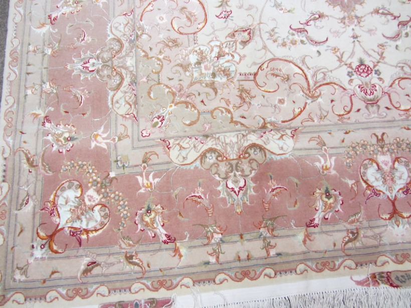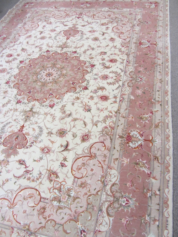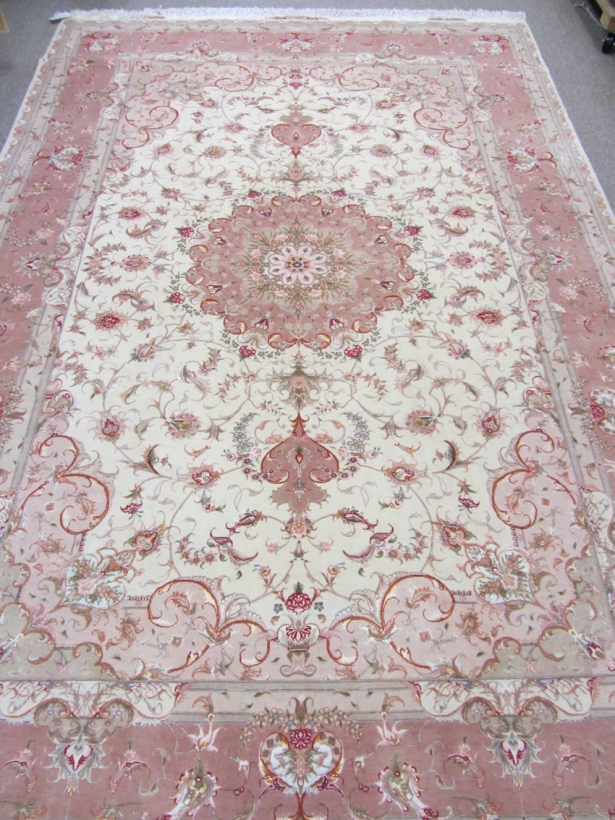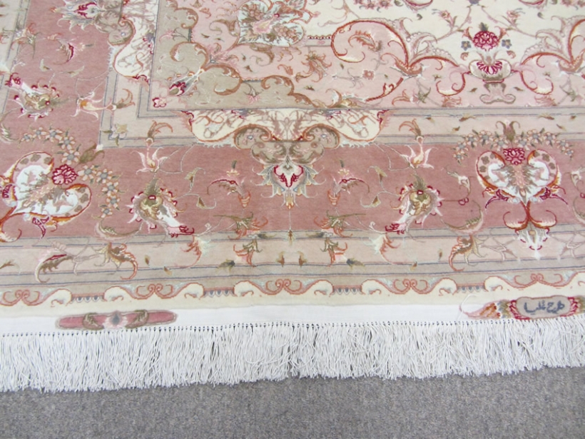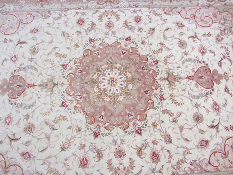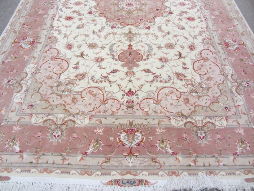[description] => Tabriz is a well-known city located in north west of Iran. Its sweets are also famous. This rug is one of the hand-woven works of master Olia with two signs on two ends of rug. Rug design is Lacheck Medallion.Foundation is silk and its pile is fresh wool and silk. Klim Baft and Aroos Baft marks are on top and bottom. Its Lacheks (corners) are beautiful vase top and its medallion resembles the sun. The small borders design borrowed from royal crowns with minimum differences. The rug is best suited in the halls as twice the size of the rug with any traditional or modern design.