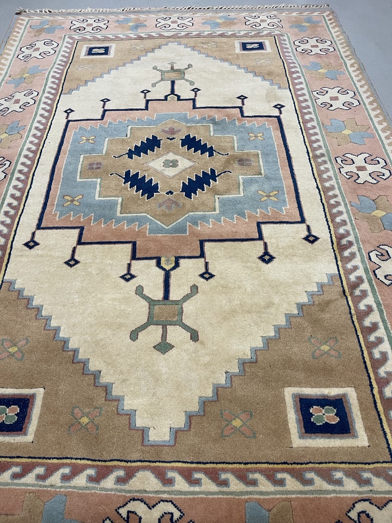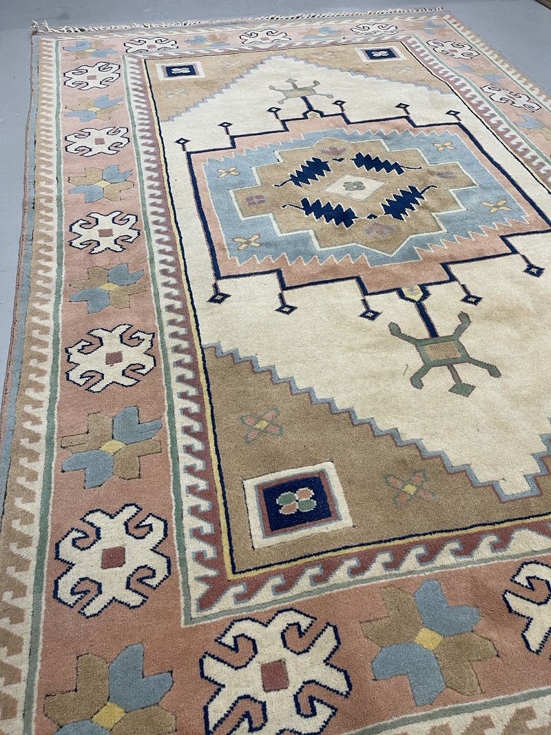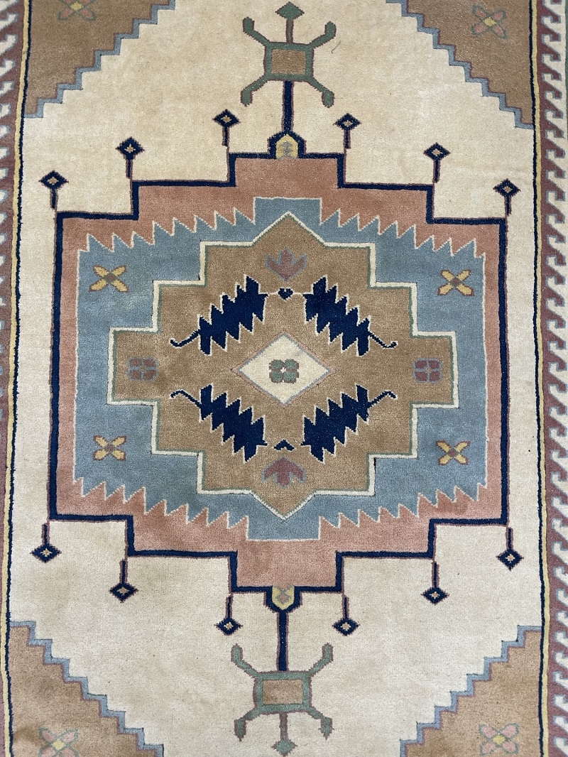 [description] => 100% Wool, Turkish rug, geometric design, no damages.