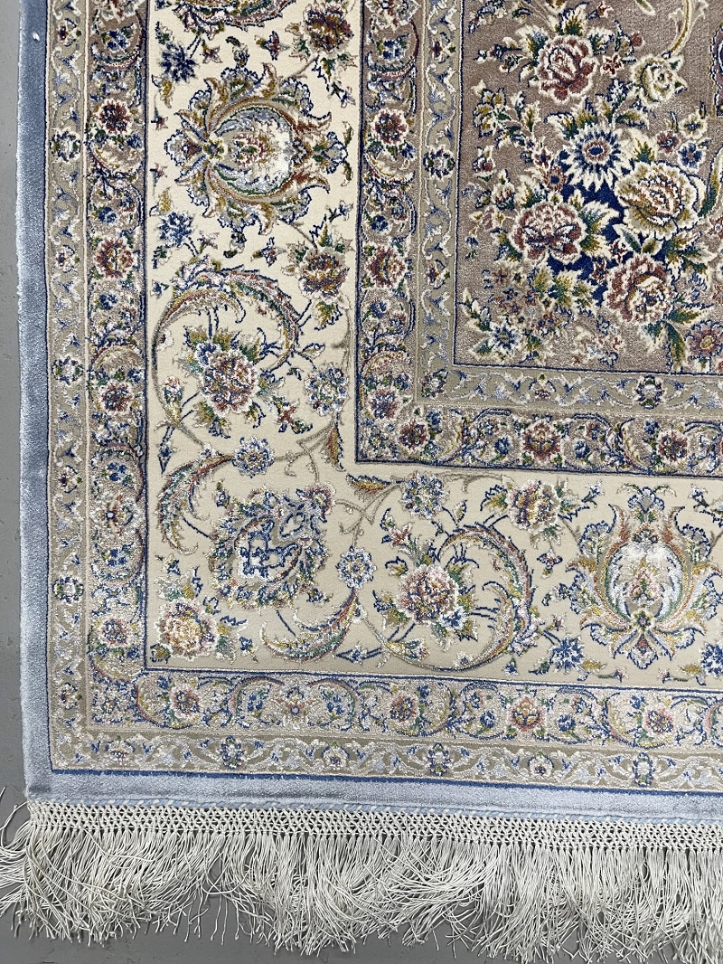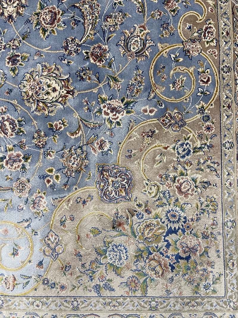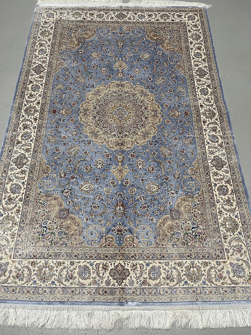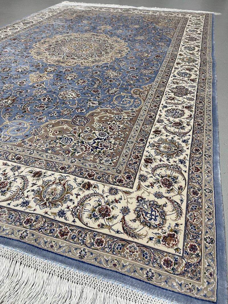 Description: Beautiful light blue Persian medallion design, very soft, brings a luxury addition to your place. Rug is made using a combination of hand and special machine with advanced tufting and knotting techniques which creates high density, ultra soft, and comfortable pile. Fringes and final touches done by hand. The material used are premium viscose, Bamboo wood yarn, and acrylic which makes the rug much more durable and resistance to stains. With such an affordable price, the quality, and look and feel of the rug is truly comparable with fully handmade much more expensive Persian silk rug.
