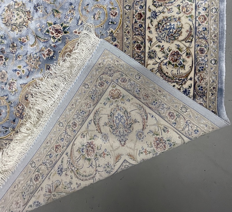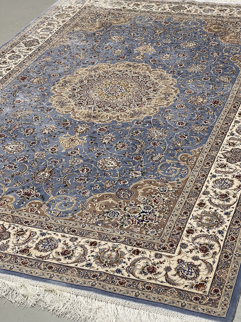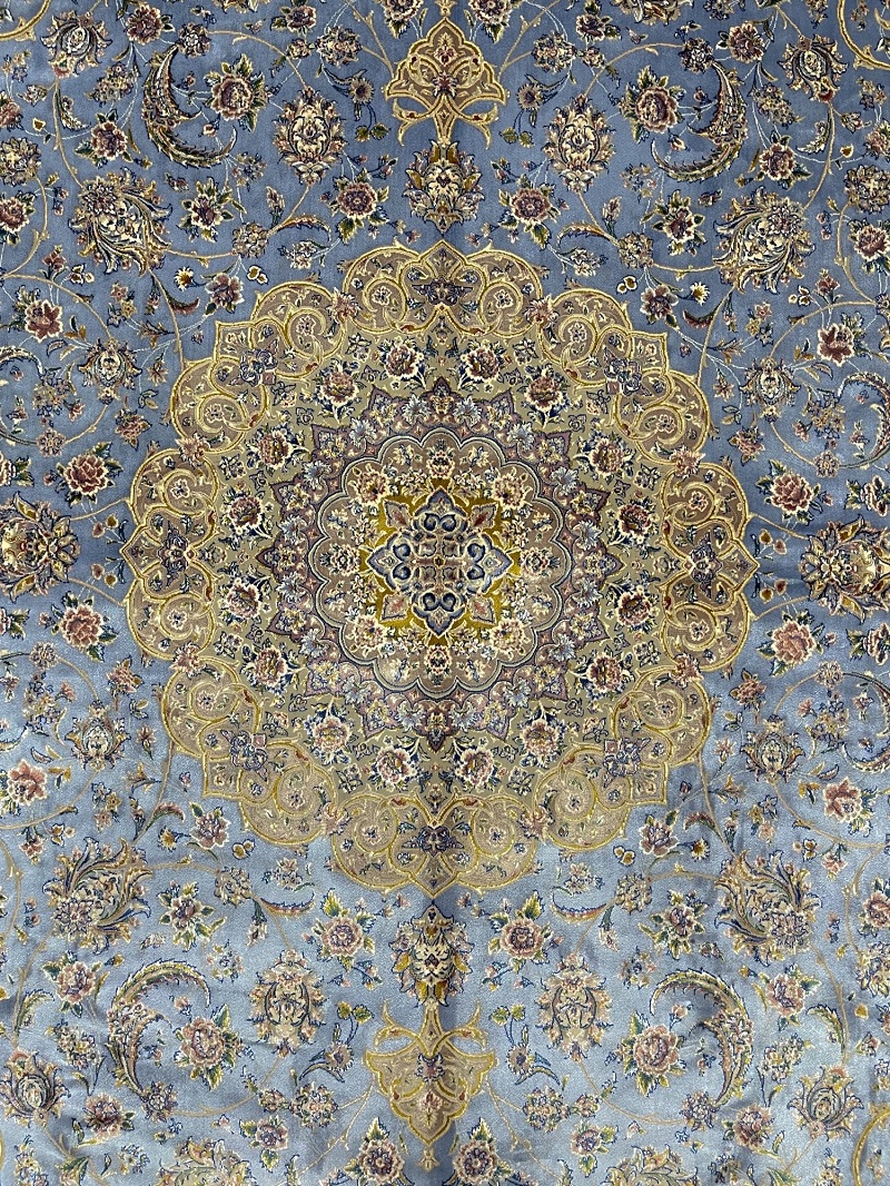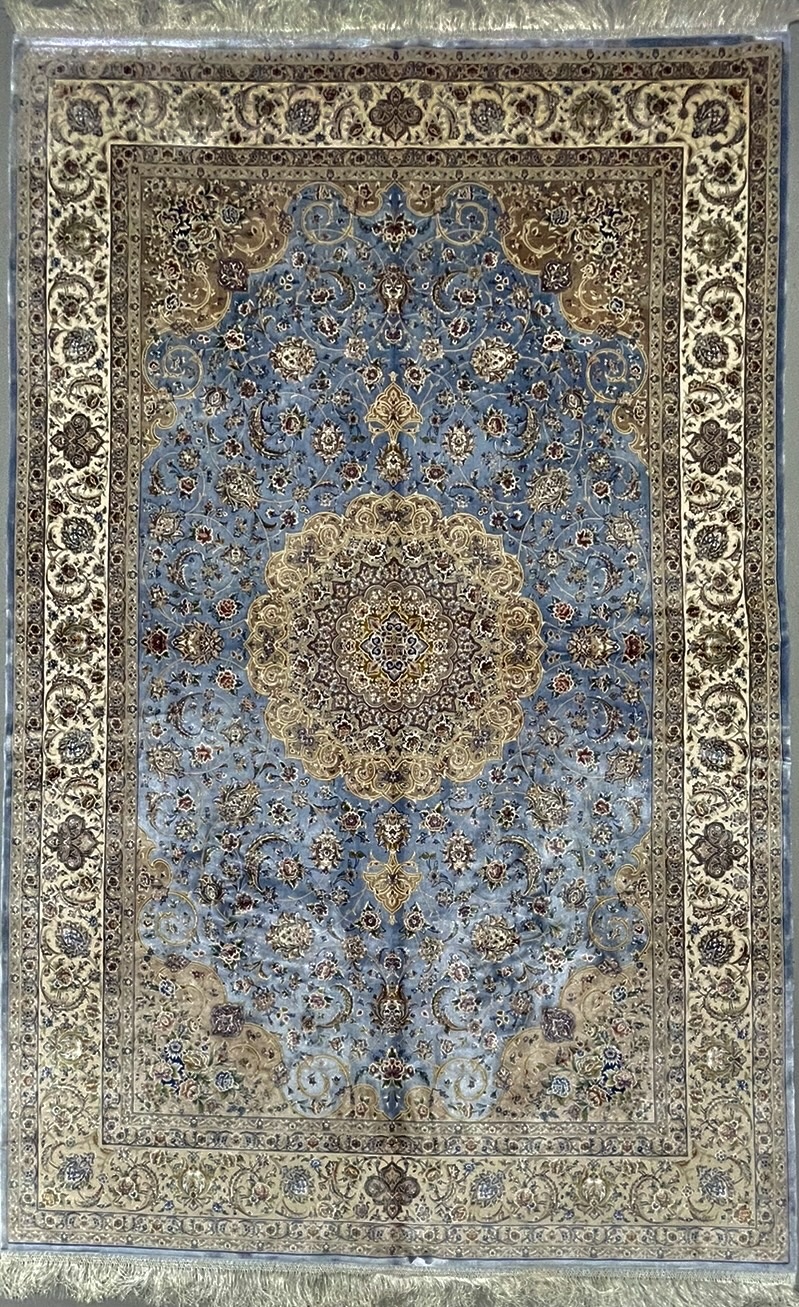 Description: Beautiful light blue Persian medallion design, very soft, brings a luxury addition to your place. Rug is made using a combination of hand and special machine with advanced tufting and knotting techniques which creates high density, ultra soft, and comfortable pile. Fringes and final touches done by hand. The material used are premium viscose, Bamboo wood yarn, and acrylic which makes the rug much more durable and resistance to stains. With such an affordable price, the quality, and look and feel of the rug is truly comparable with fully handmade much more expensive Persian silk rug.