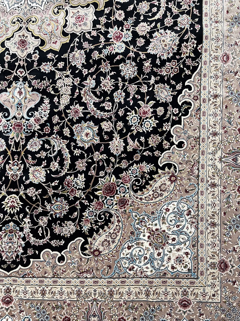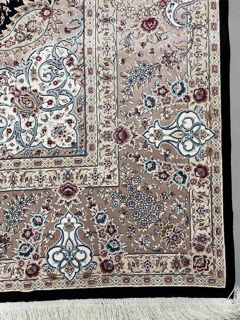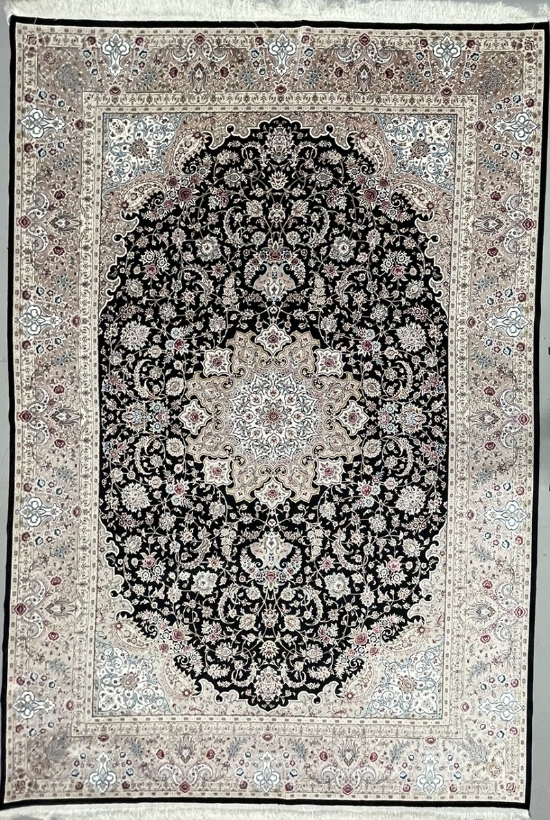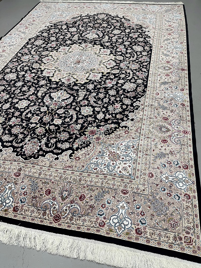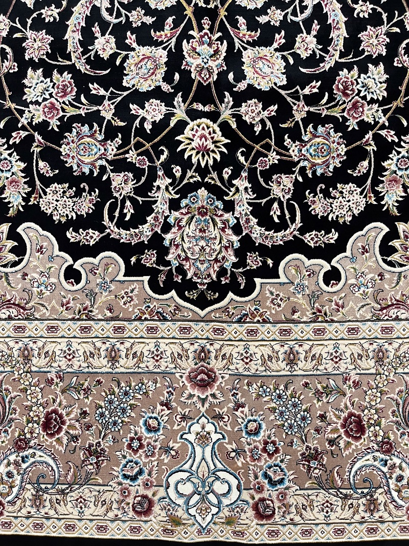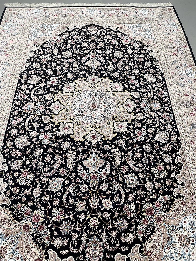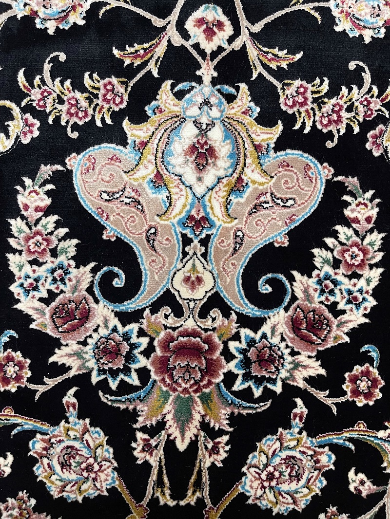 Description: Beautiful black and cream Persian medallion design, very soft, brings a luxury addition to your place. Rug is made using a combination of hand and special machine with advanced tufting and knotting techniques which creates high density, ultra soft, and comfortable pile. Fringes and final touches done by hand. The material used are premium viscose, Bamboo wood yarn, and acrylic which makes the rug much more durable and resistance to stains. With such an affordable price, the quality, and look and feel of the rug is truly comparable with fully handmade much more expensive Persian silk rug.