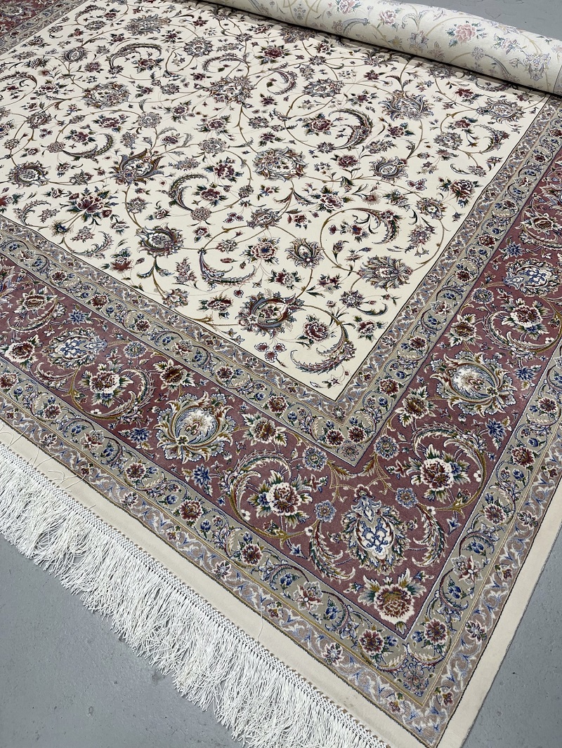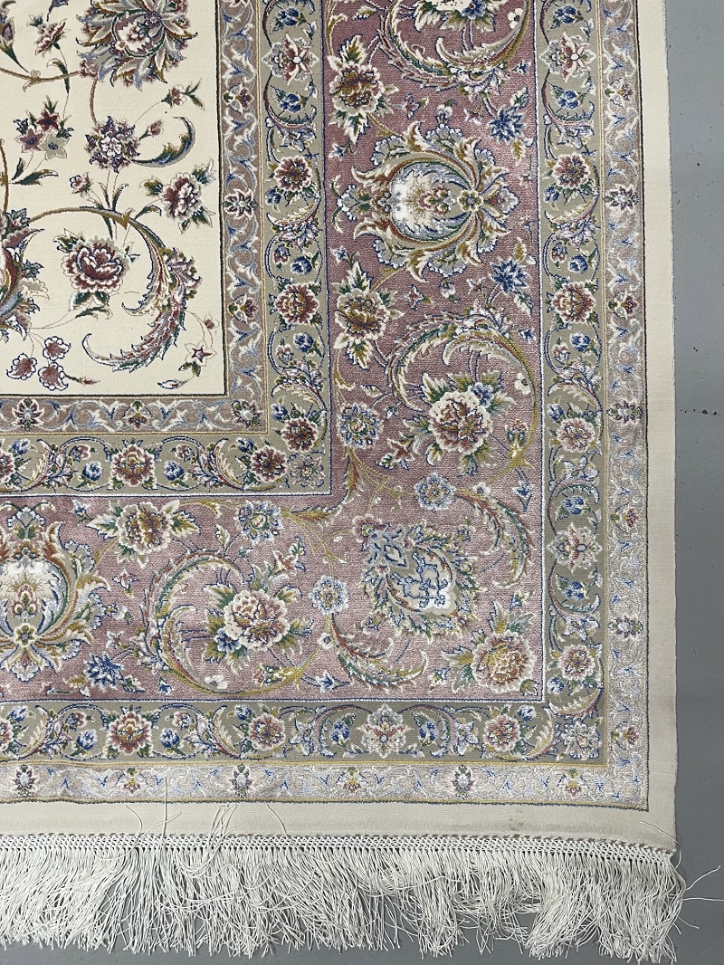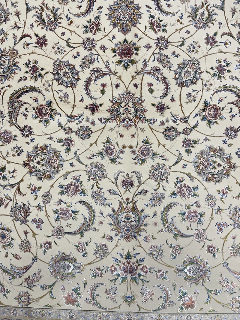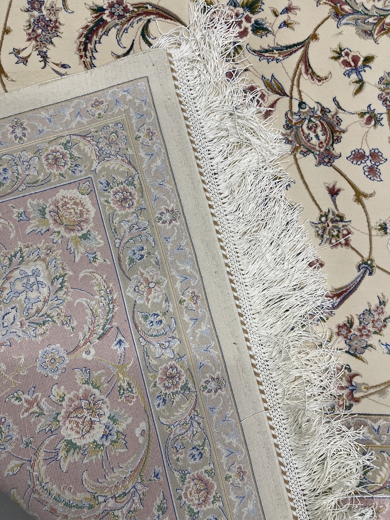 Beautiful cream and beige Persian Afshan (spread flowers) design, very soft, brings a luxury addition to your place. Rug is made using a combination of hand and special machine with advanced tufting and knotting techniques which creates high density, ultra soft, and comfortable pile. Fringes and final touches done by hand. The material used are premium viscose, Bamboo wood yarn, and acrylic which makes the rug much more durable and resistance to stains. With such an affordable price, the quality, and look and feel of the rug is truly comparable with fully handmade much more expensive Persian silk rug.