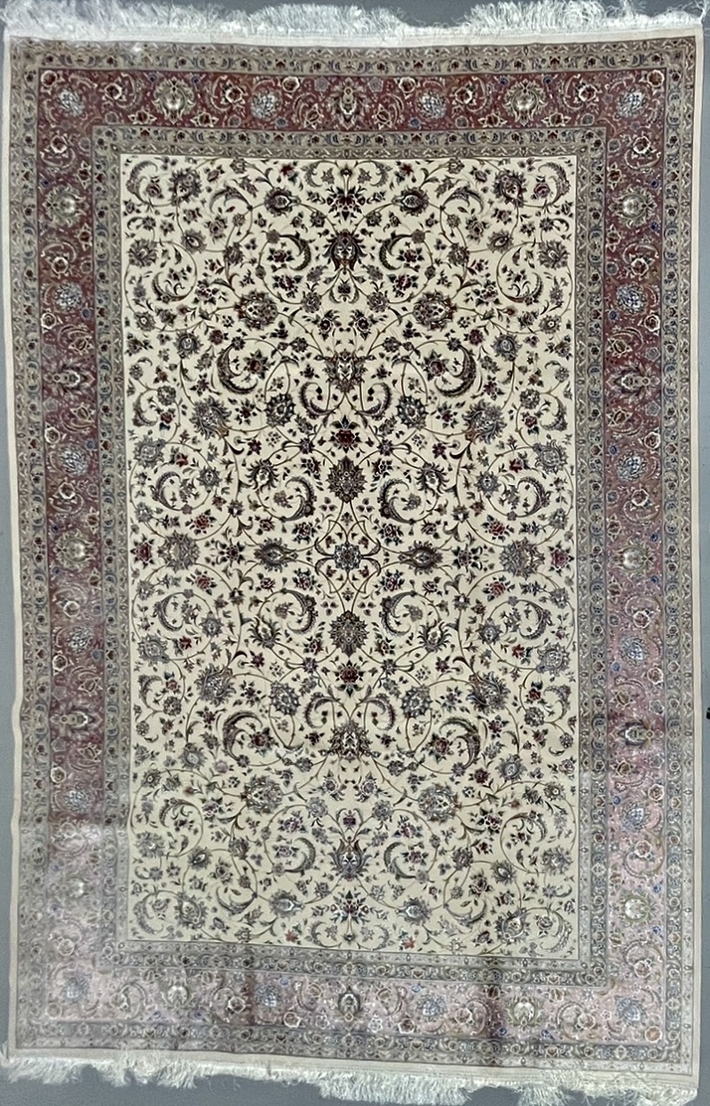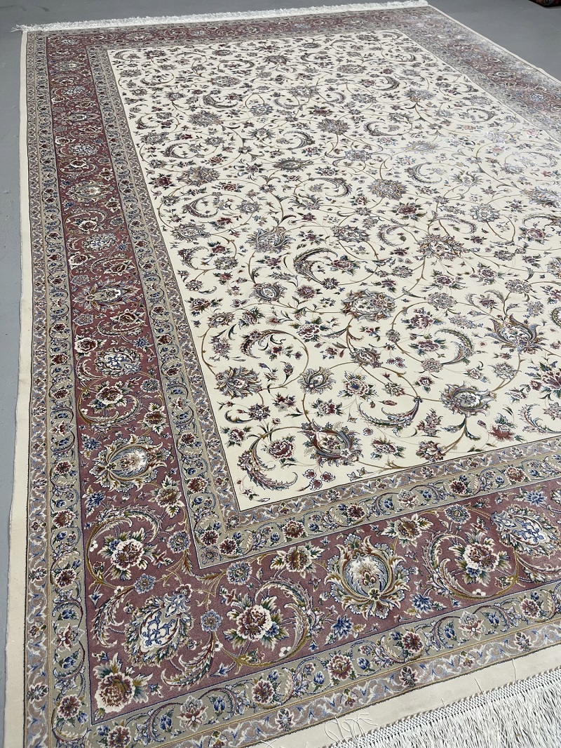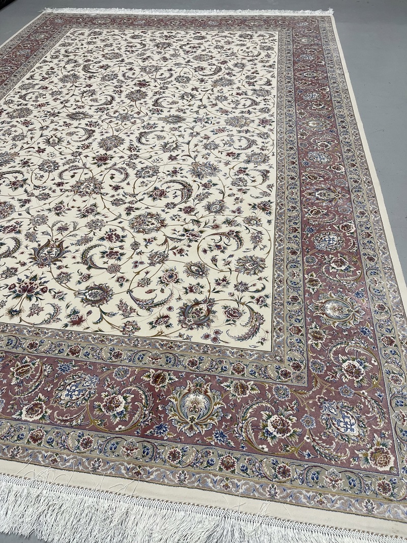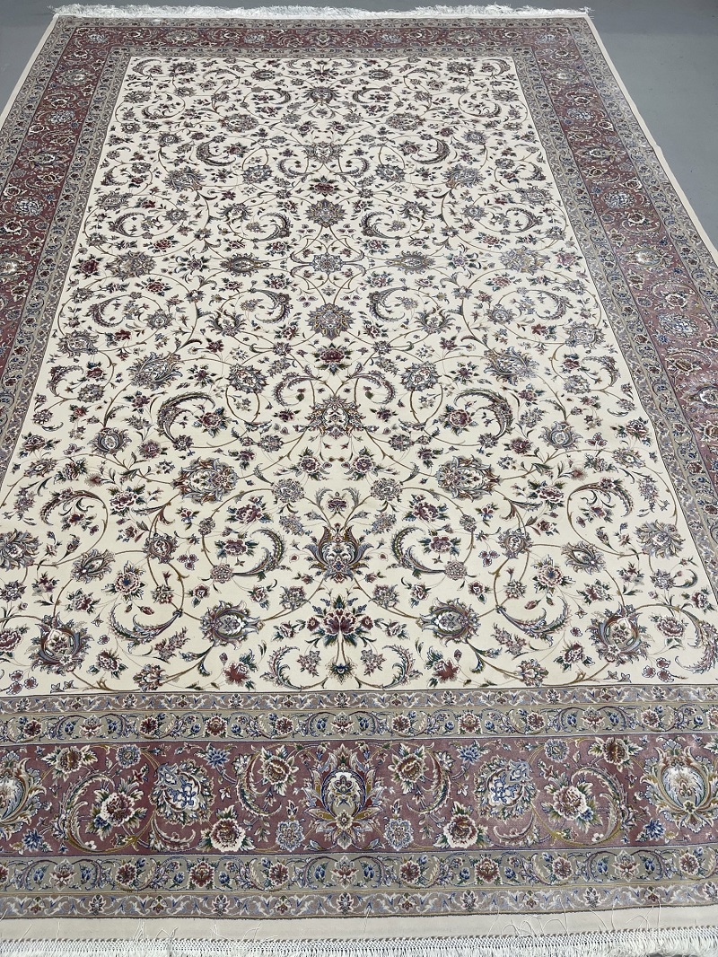 Beautiful cream and beige Persian Afshan (spread flowers) design, very soft, brings a luxury addition to your place. Rug is made using a combination of hand and special machine with advanced tufting and knotting techniques which creates high density, ultra soft, and comfortable pile. Fringes and final touches done by hand. The material used are premium viscose, Bamboo wood yarn, and acrylic which makes the rug much more durable and resistance to stains. With such an affordable price, the quality, and look and feel of the rug is truly comparable with fully handmade much more expensive Persian silk rug.