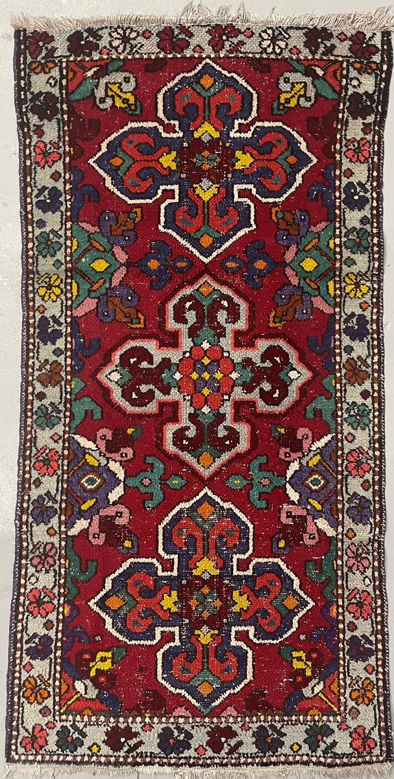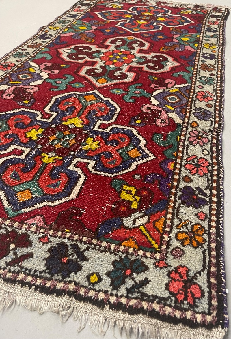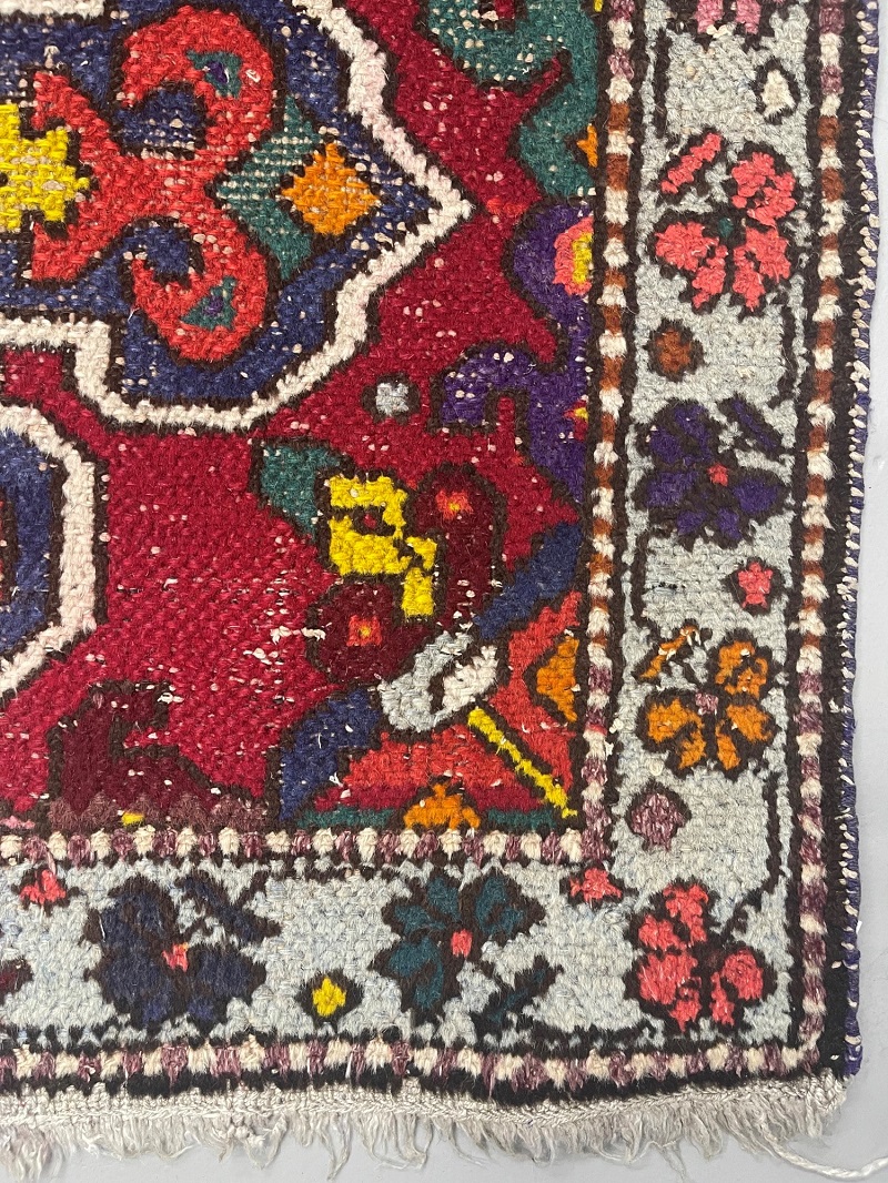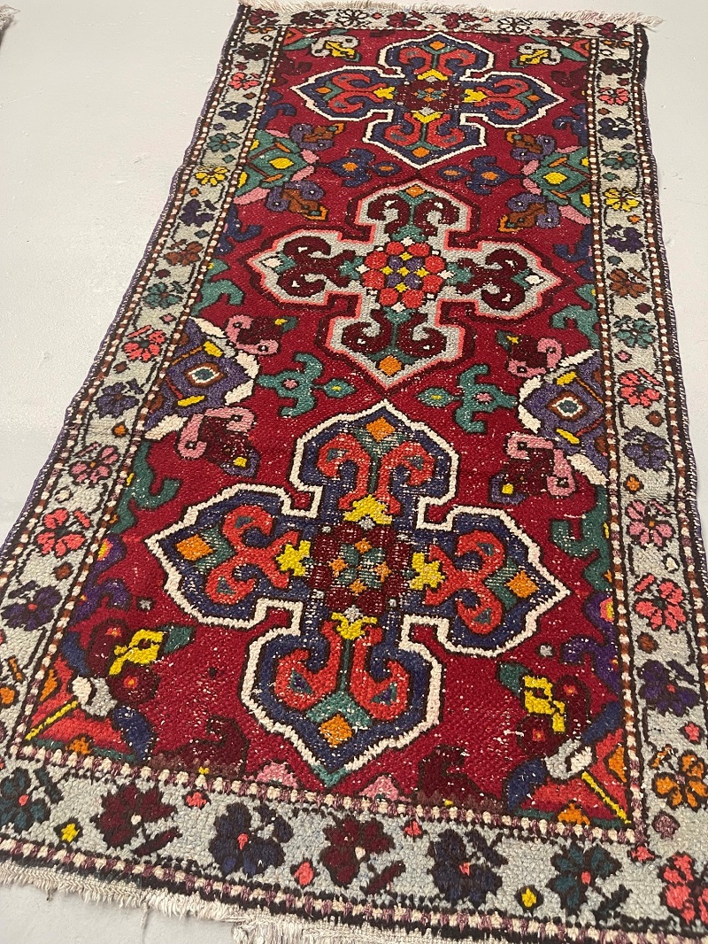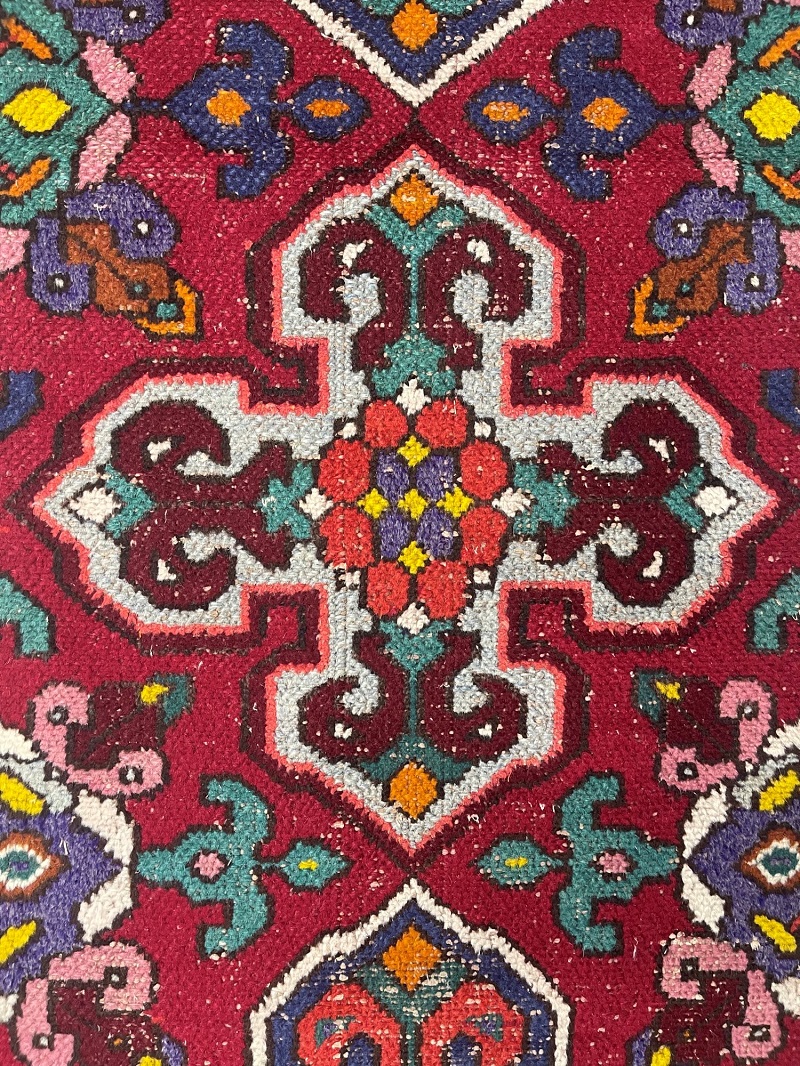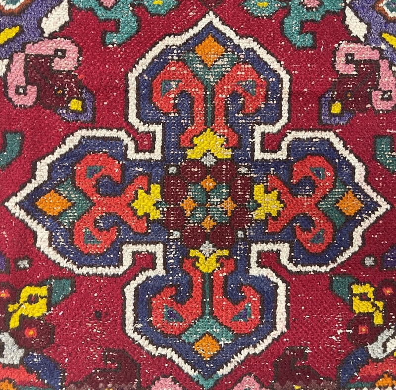 Description: This rug is semi-antique with some worn-out spots.