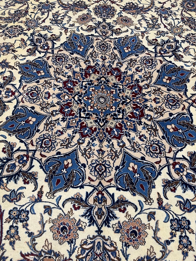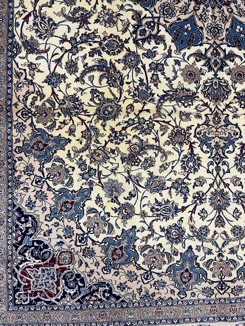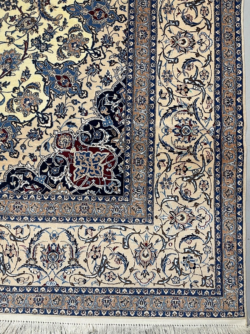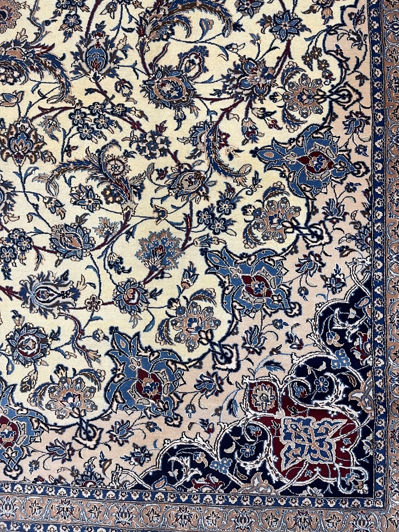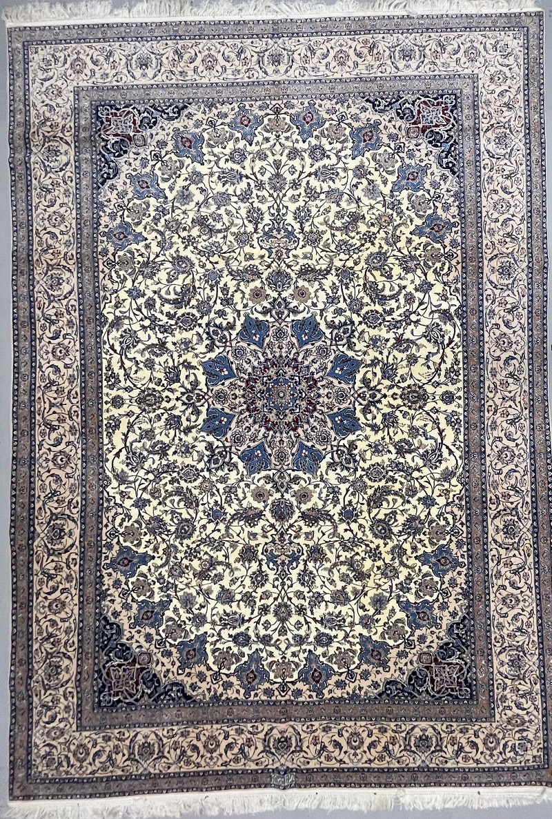 Description: High quality 6 La (6 yarn string used in foundation) Nain Isfahan rug signed by Master Habibian.