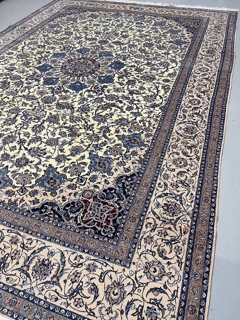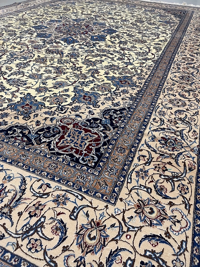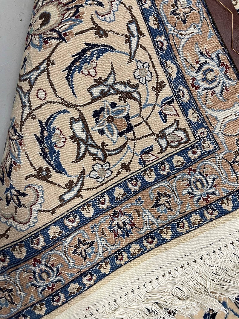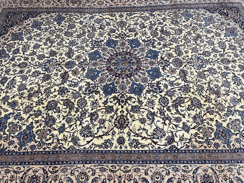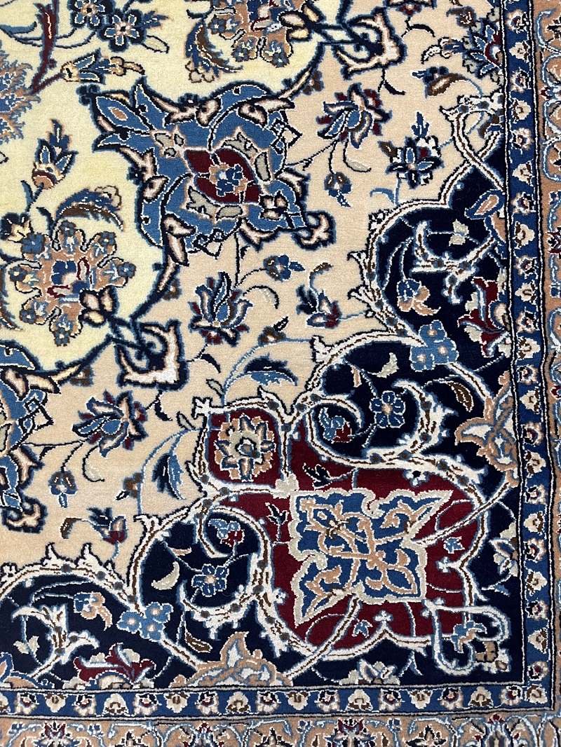 Description: High quality 6 La (6 yarn string used in foundation) Nain Isfahan rug signed by Master Habibian.