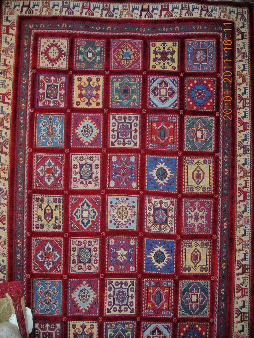 Description: New generation of Persian hand knotted - three dimensional Klim and carpet geometric frame.