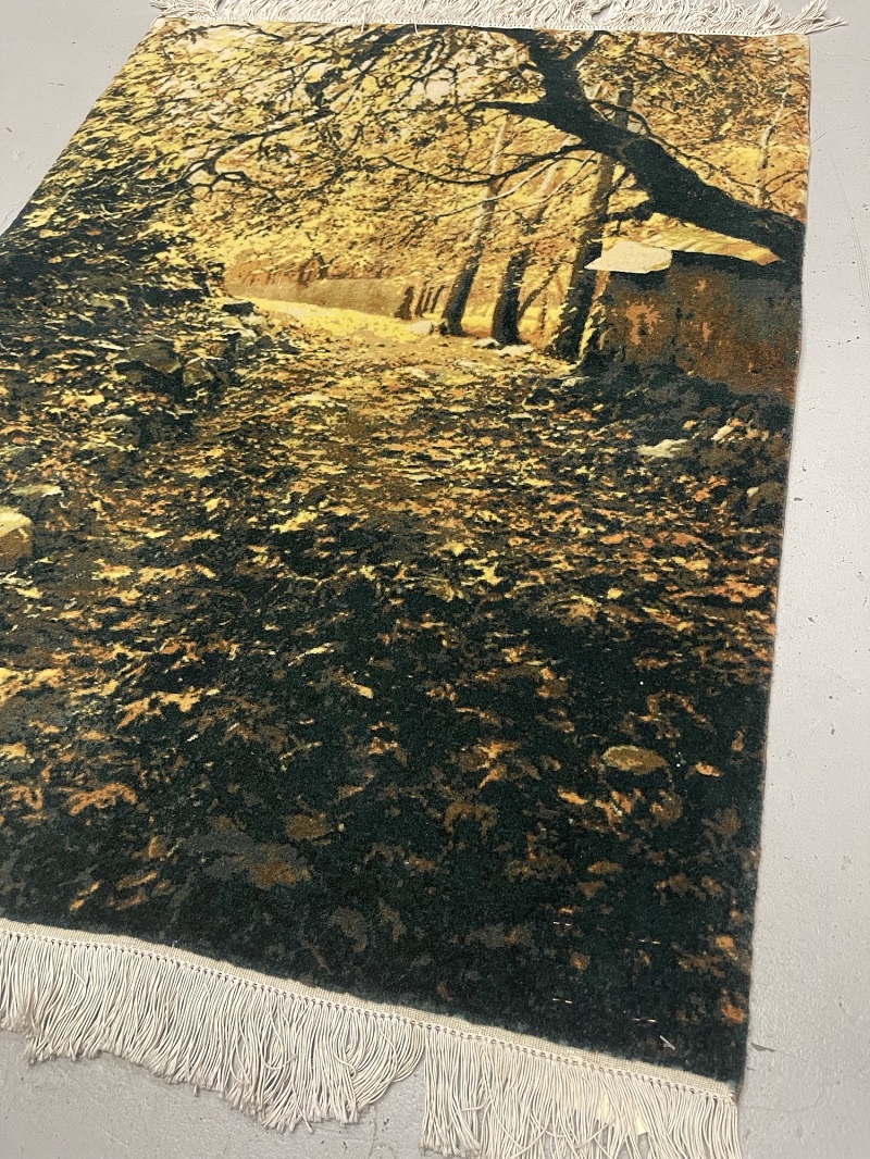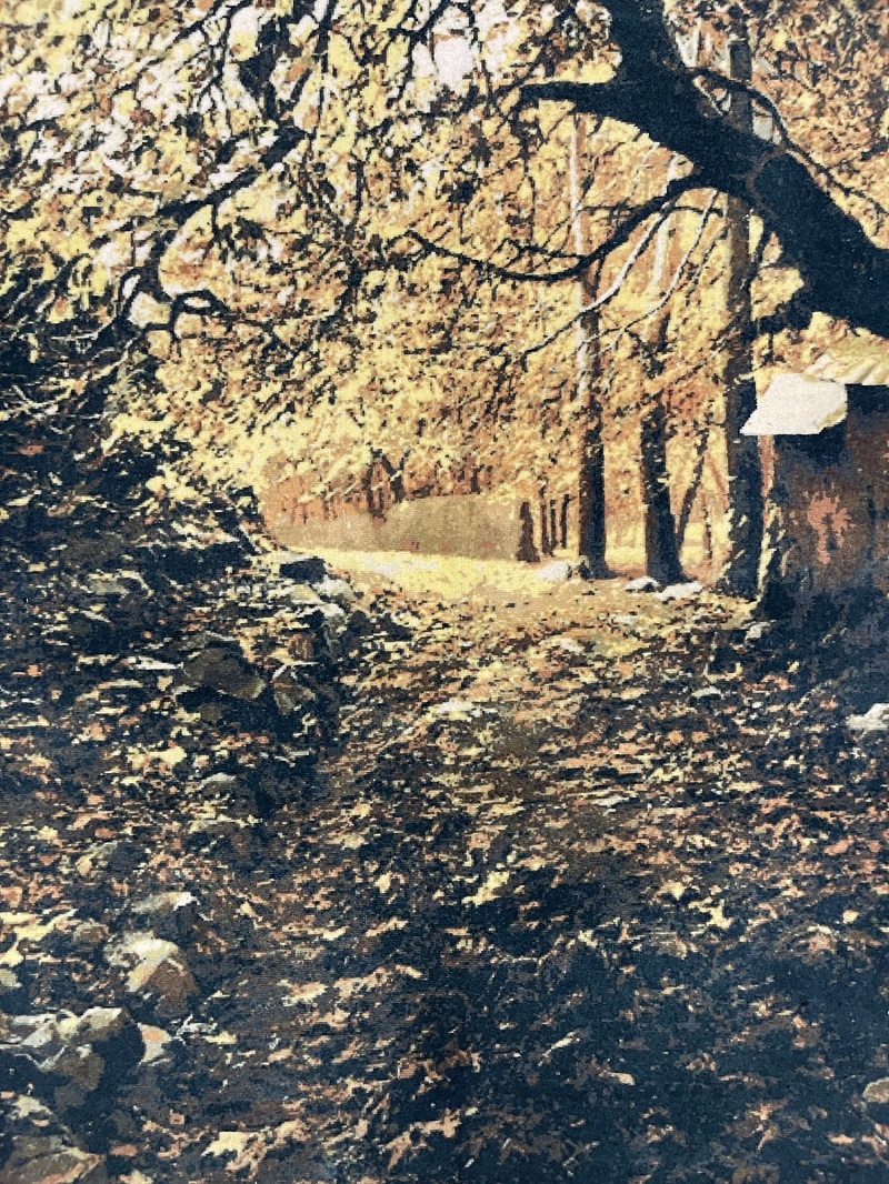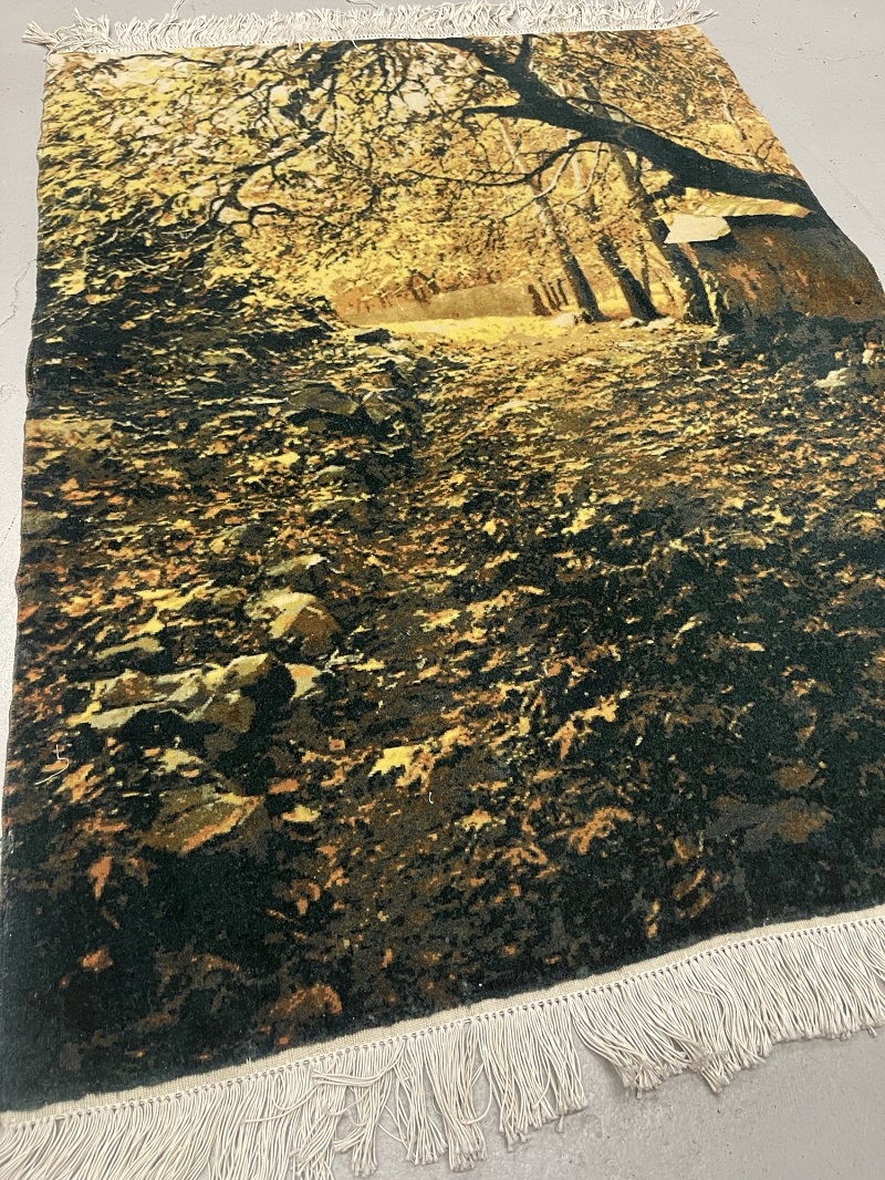 Description: A beautiful scene of Fall on all silk handmade rug from city of Tabriz.