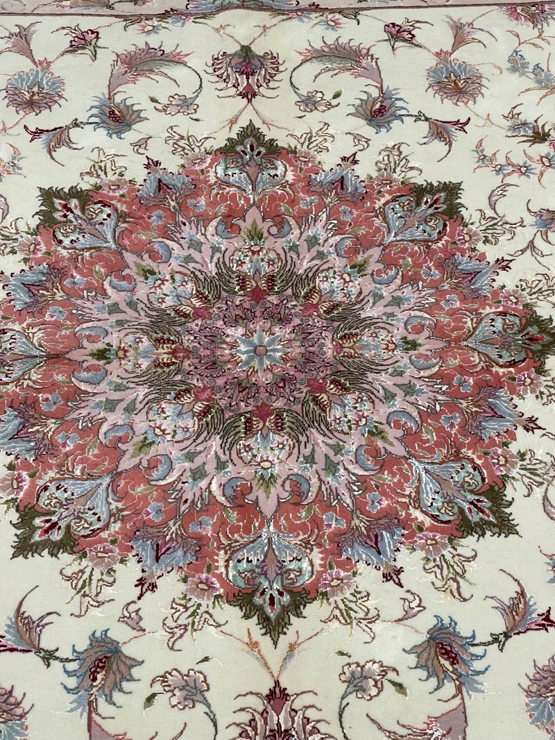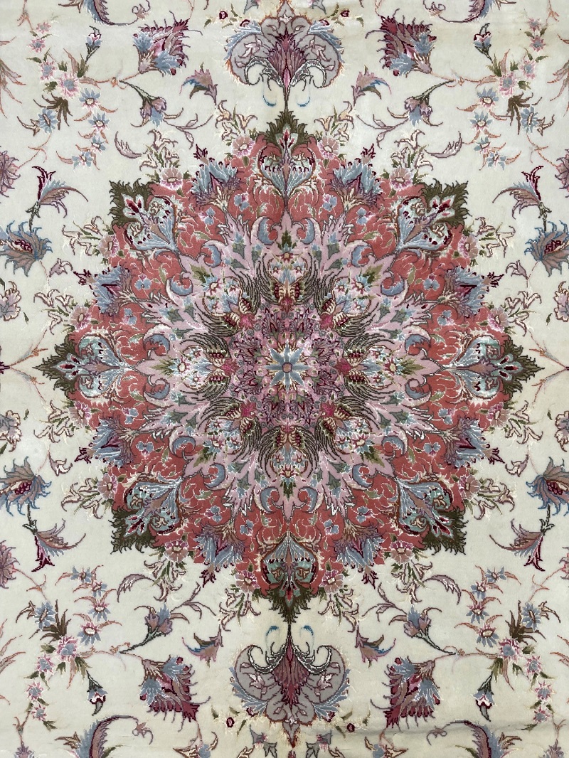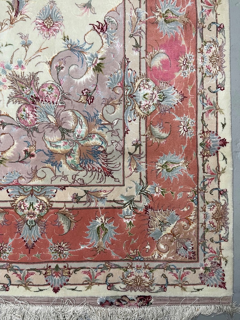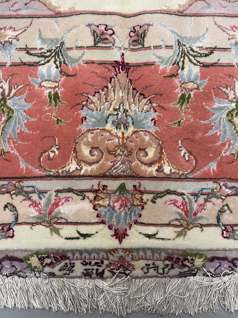 Description: Silk base high quality Tabriz rug, Beheshi design signature on two edges.