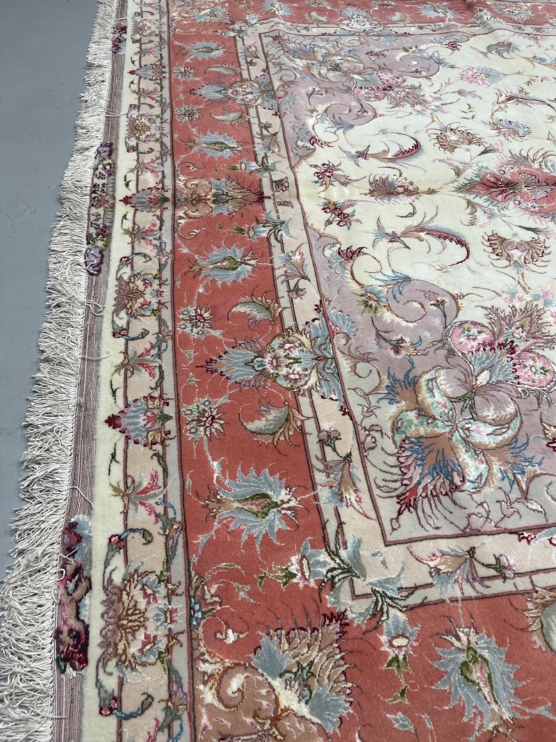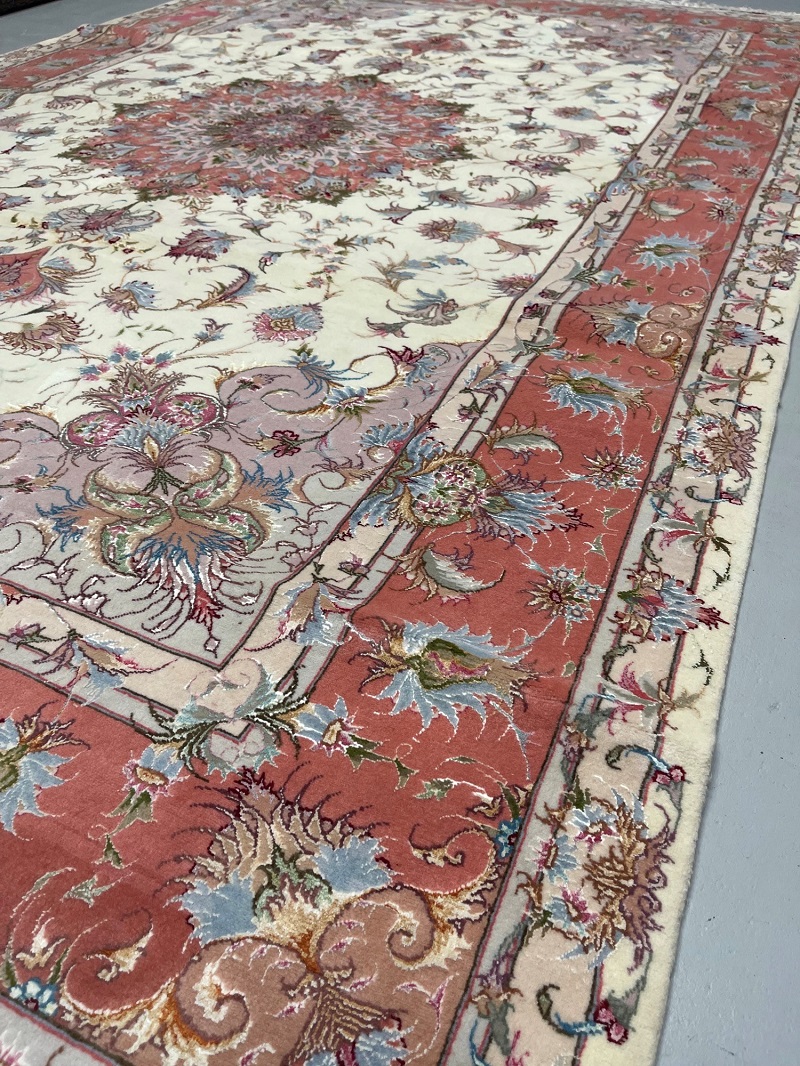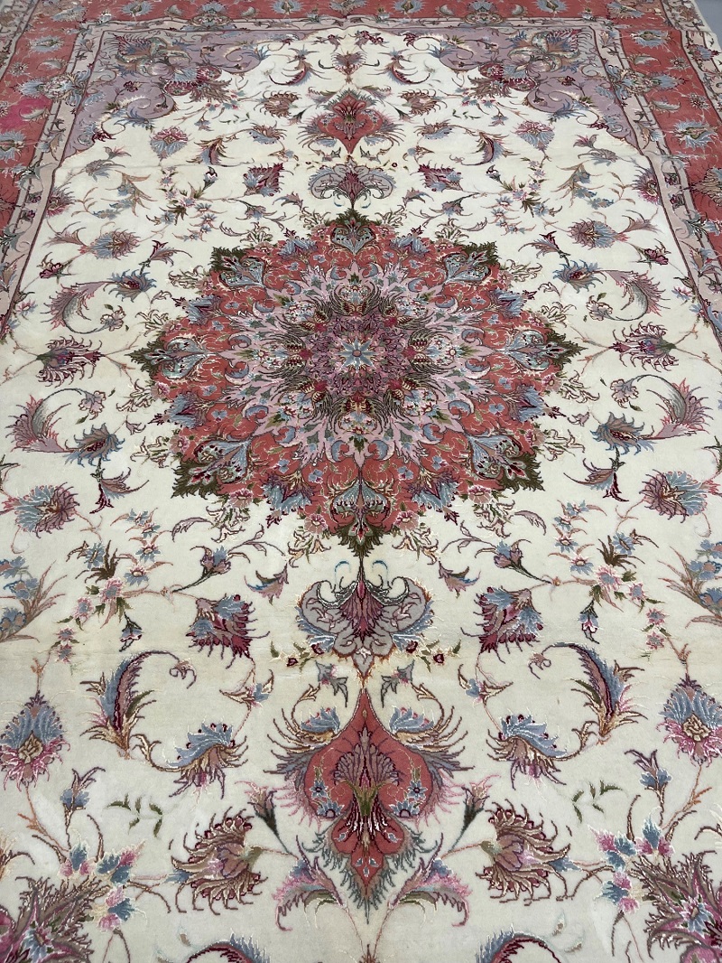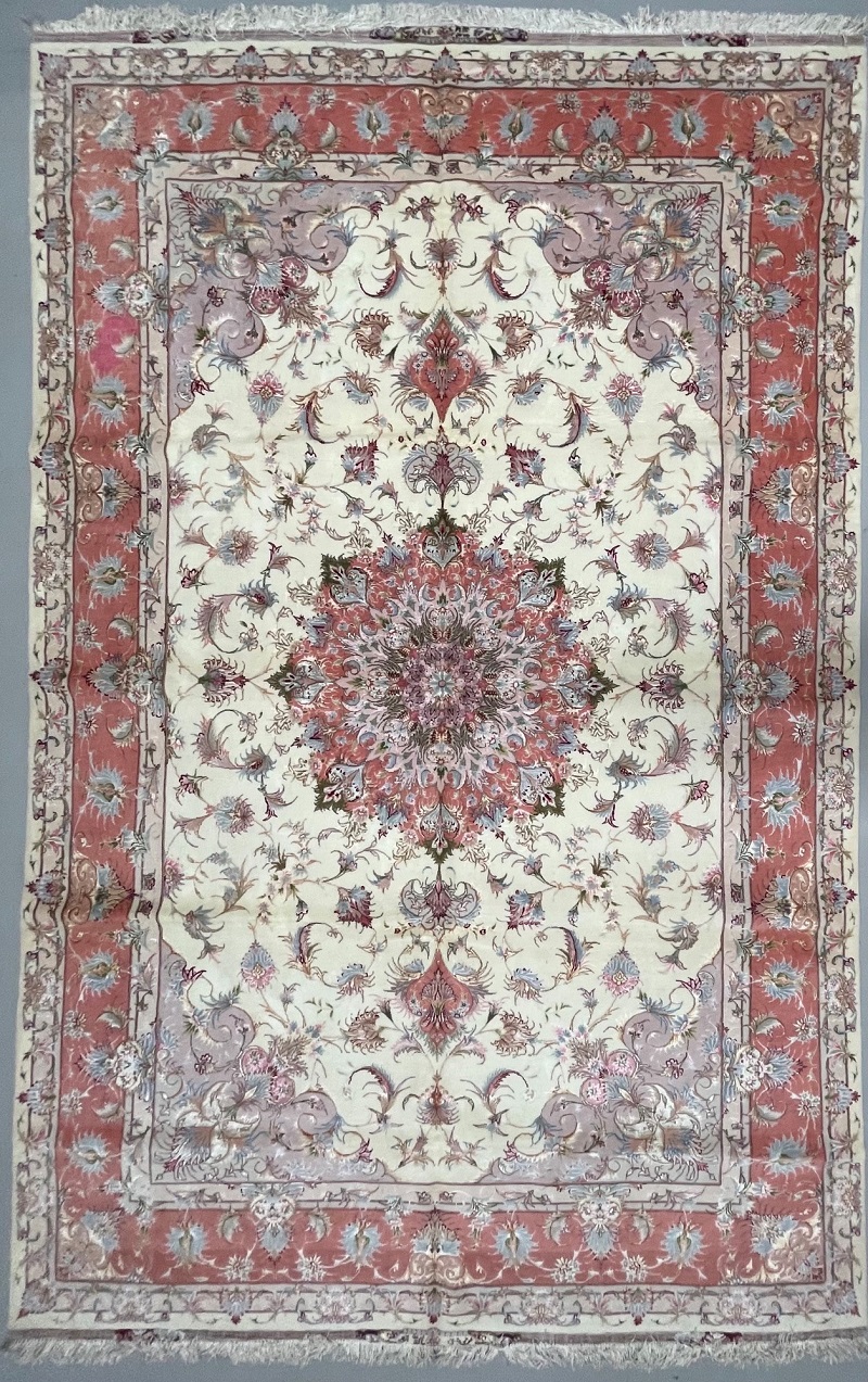 Description: Silk base high quality Tabriz rug, Beheshi design signature on two edges.