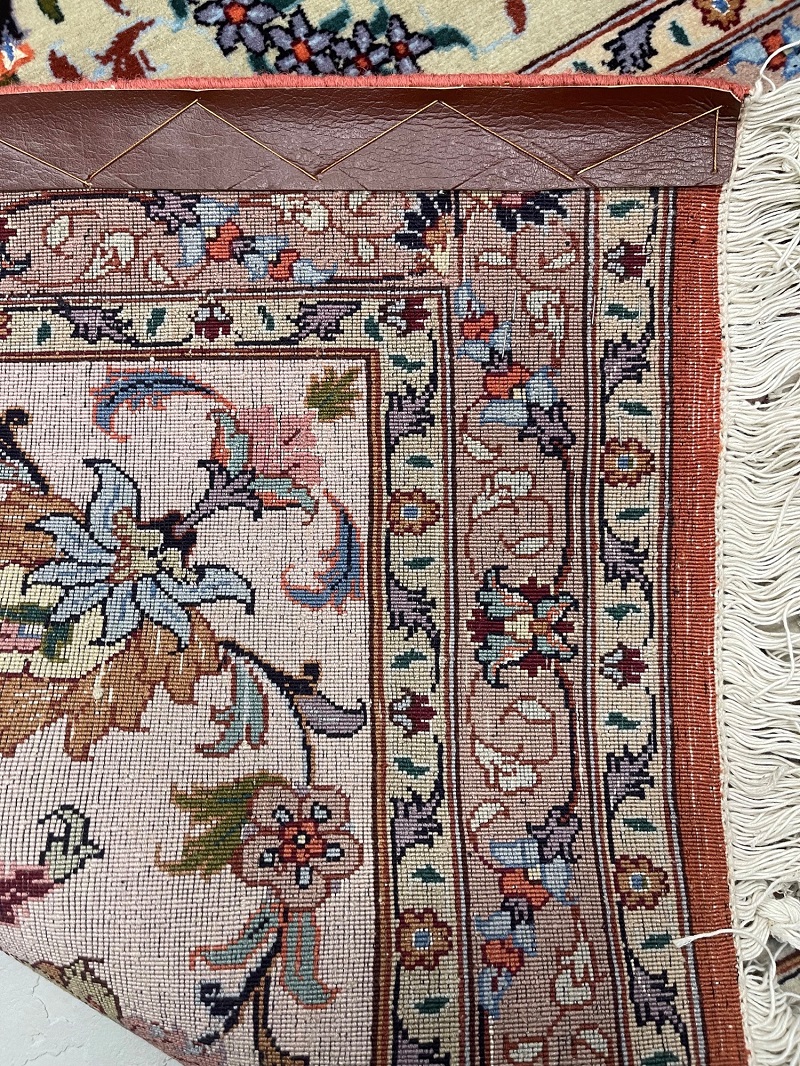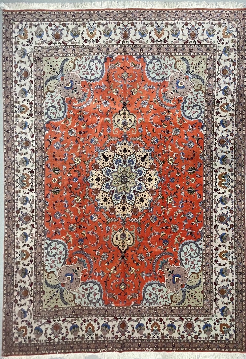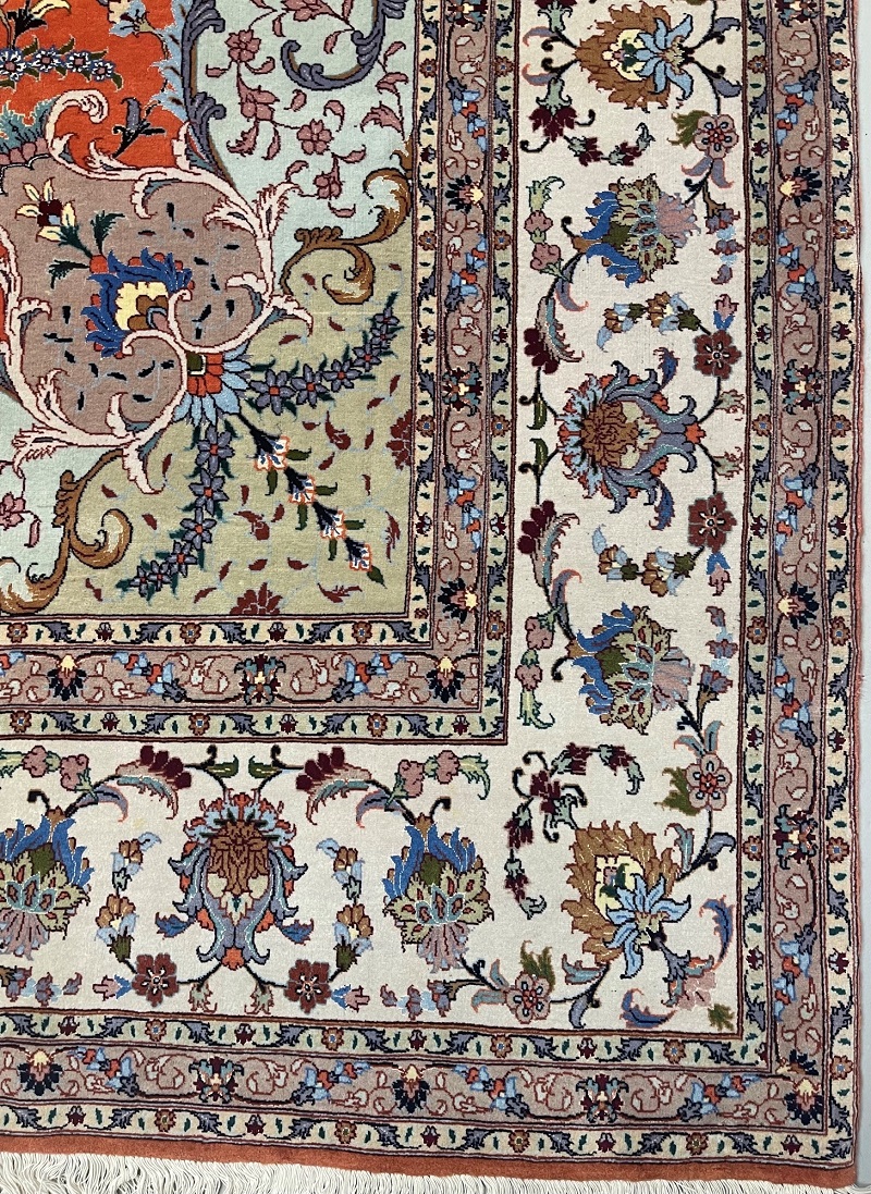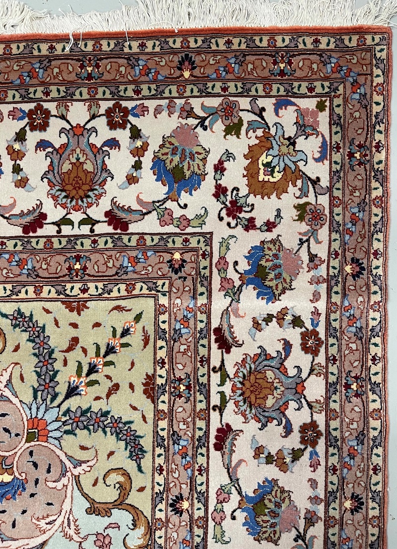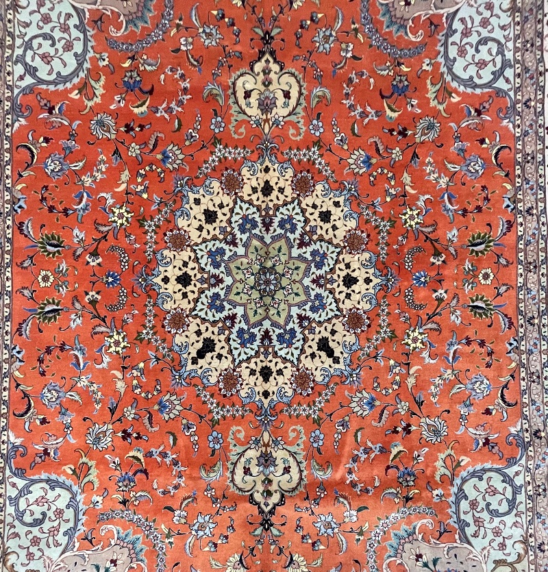 Description: Silk and wool original Persian hand-knotted rug from Tabriz, one of the most famous cities in Iran in high-end rug weaving industry.