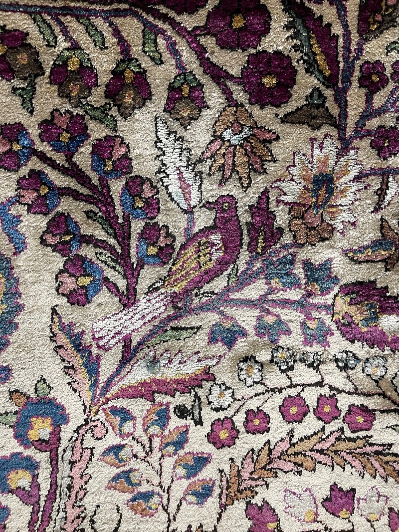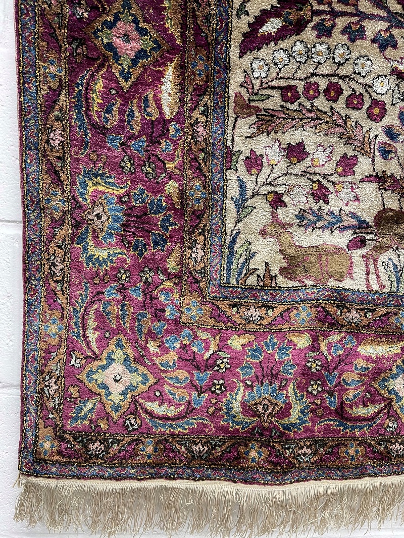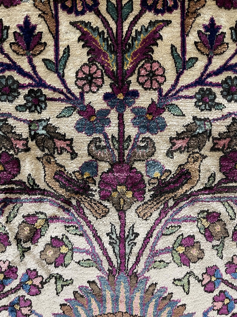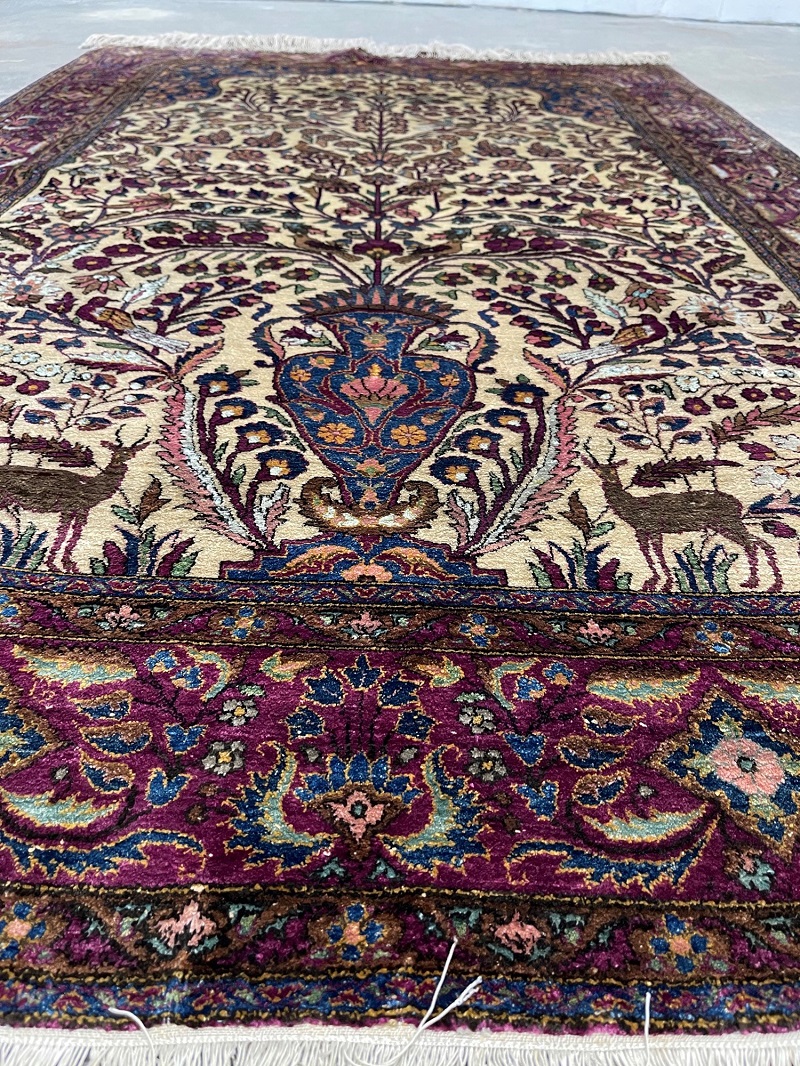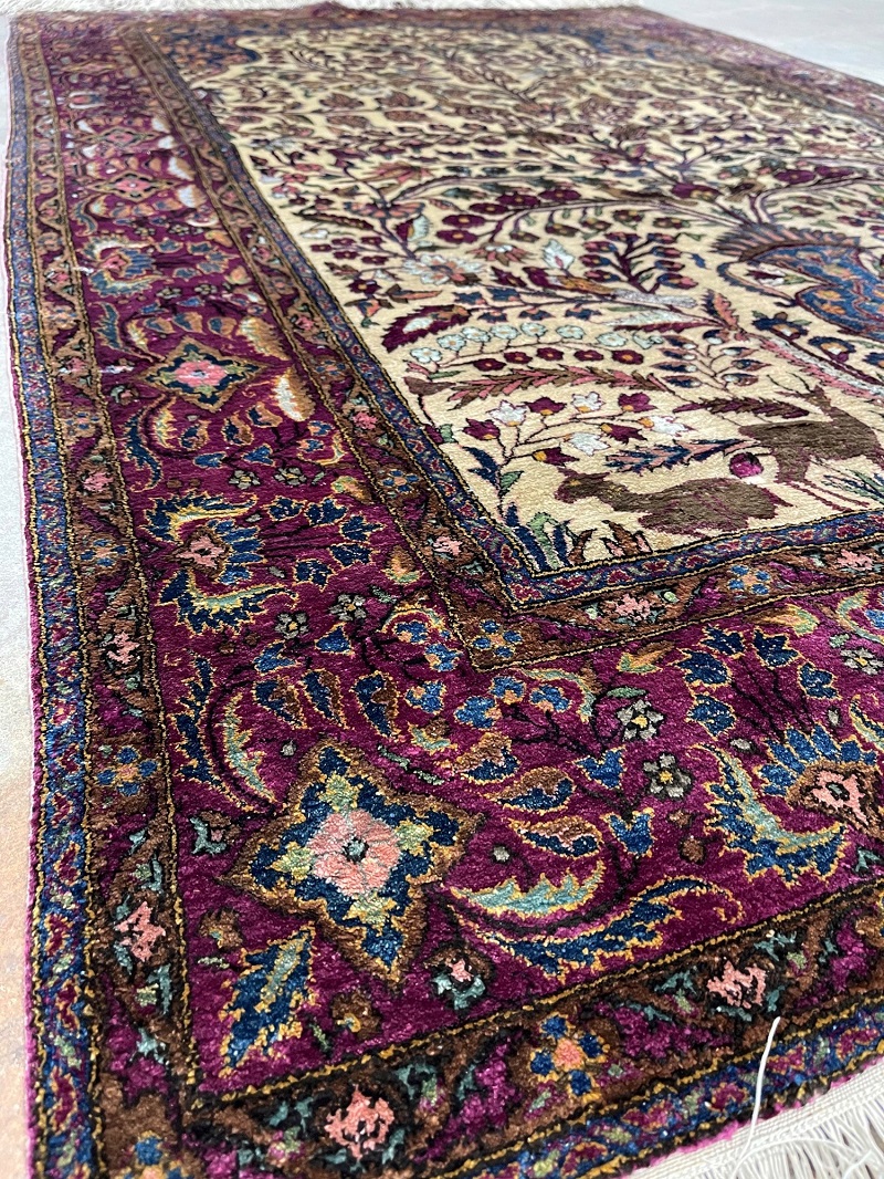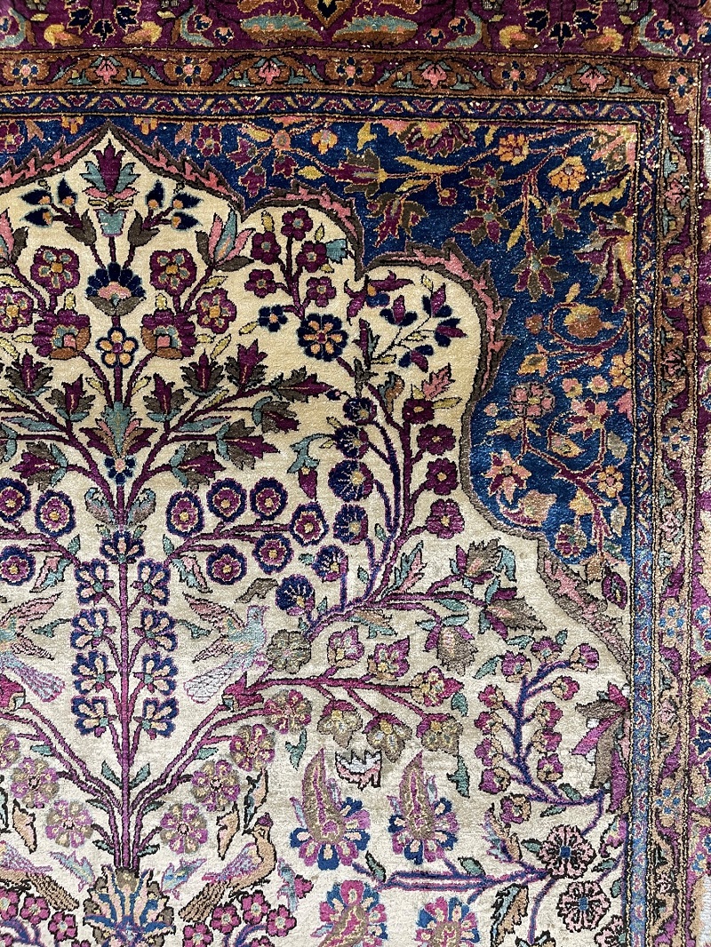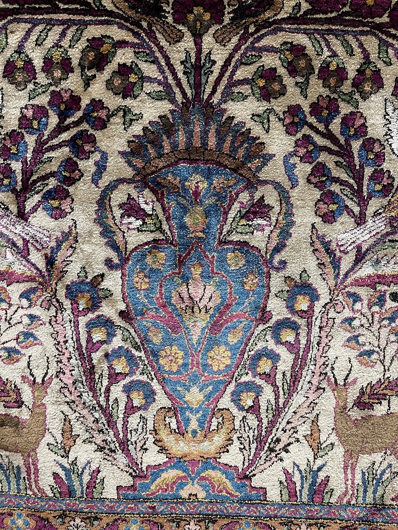 Rug was probably a custom order from royals or a wealthy family as it was unusual from Kashan rug makers to have full silk rugs.