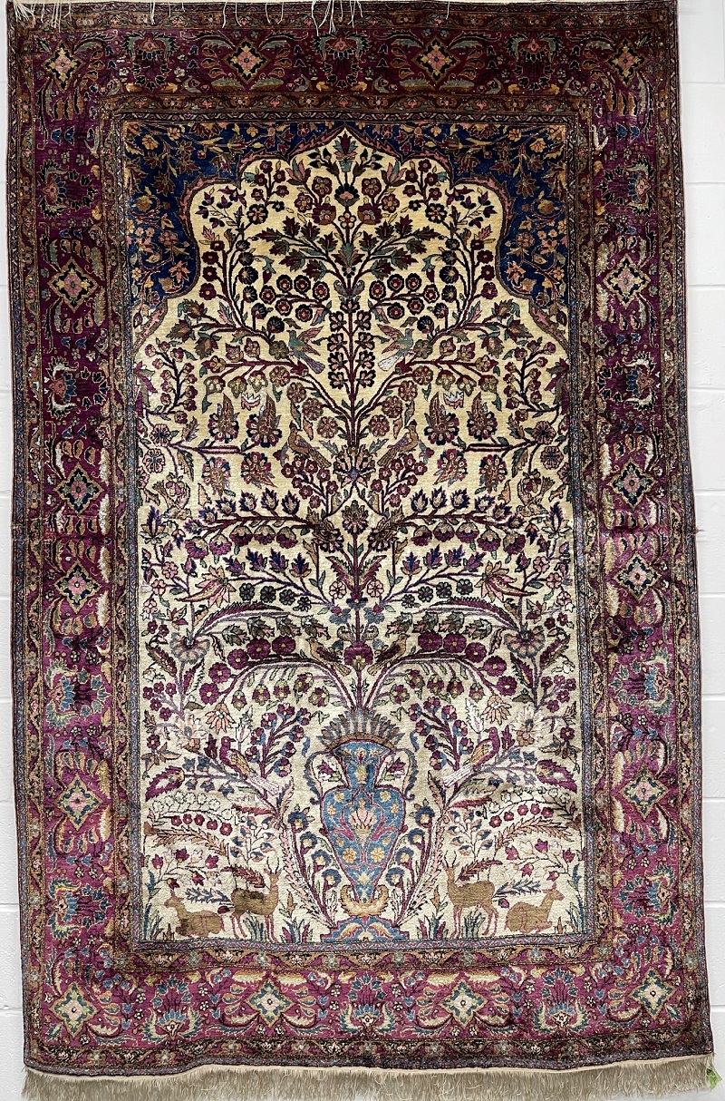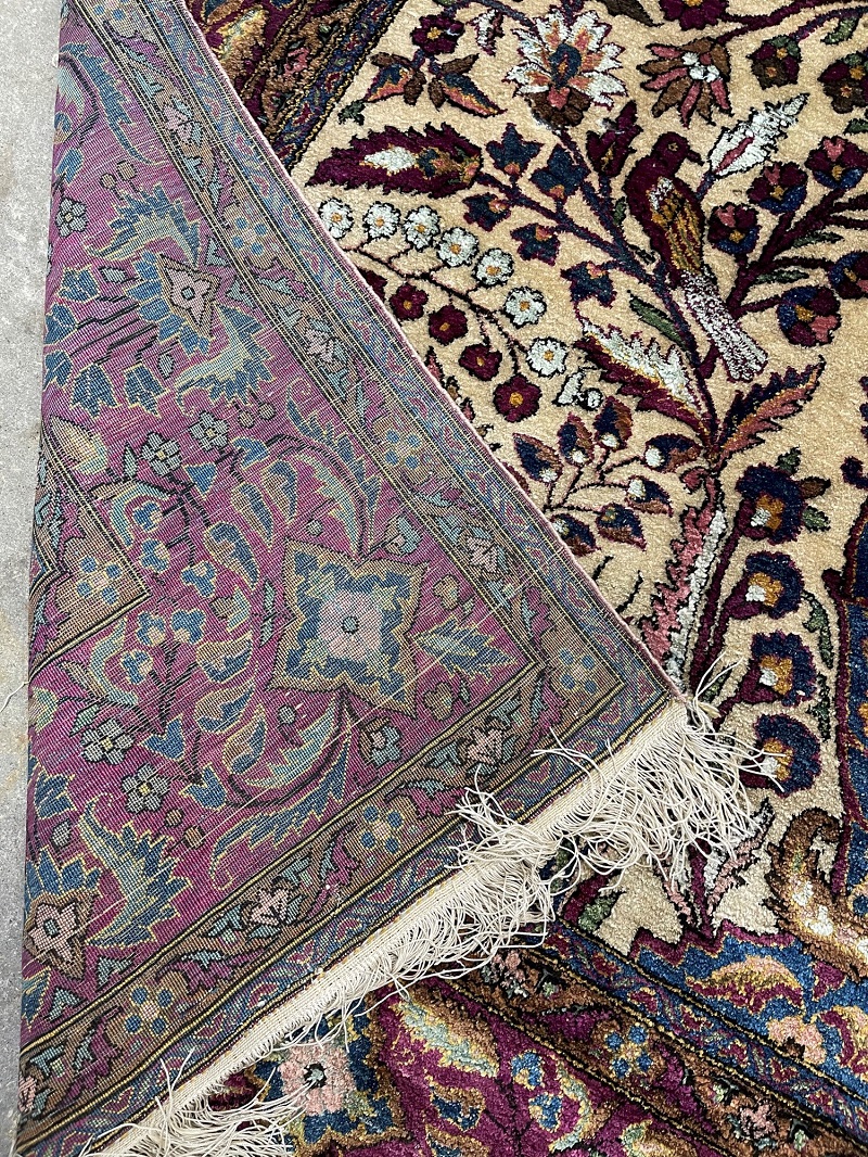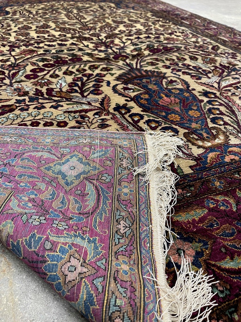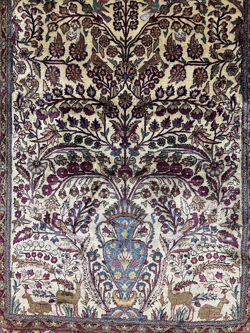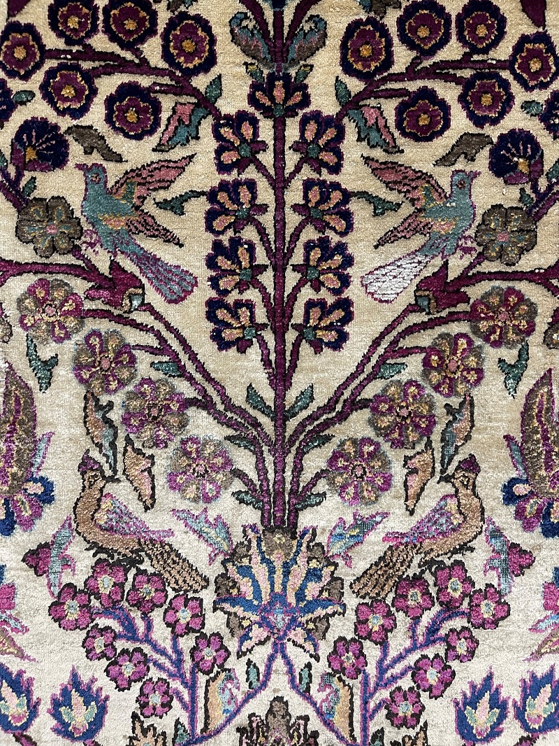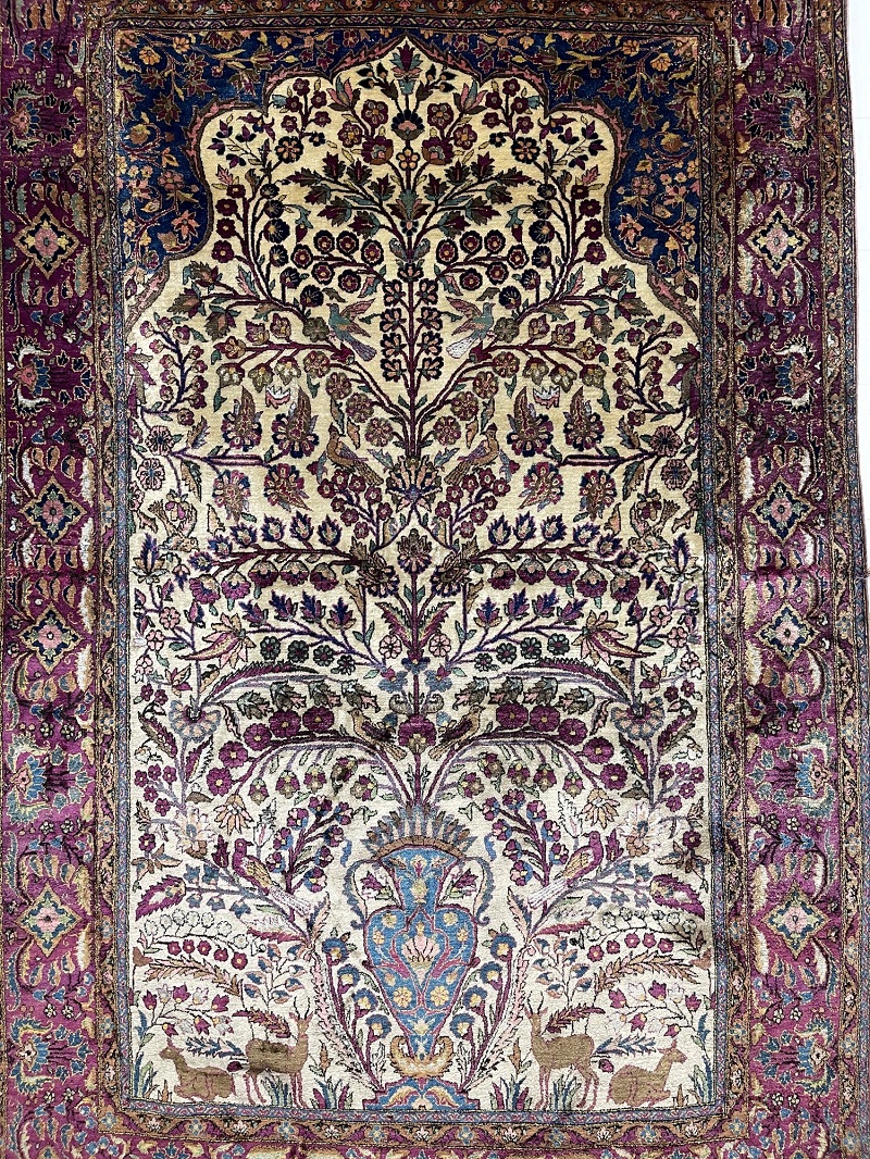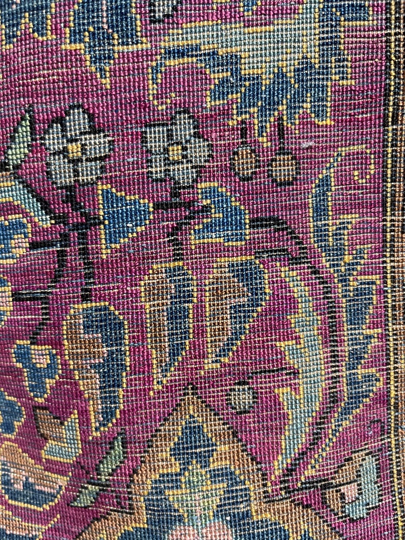 Rug was probably a custom order from royals or a wealthy family as it was unusual from Kashan rug makers to have full silk rugs.