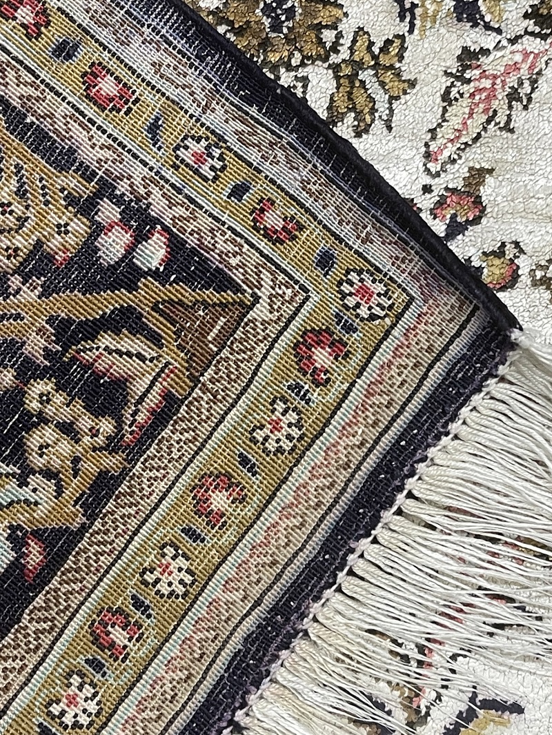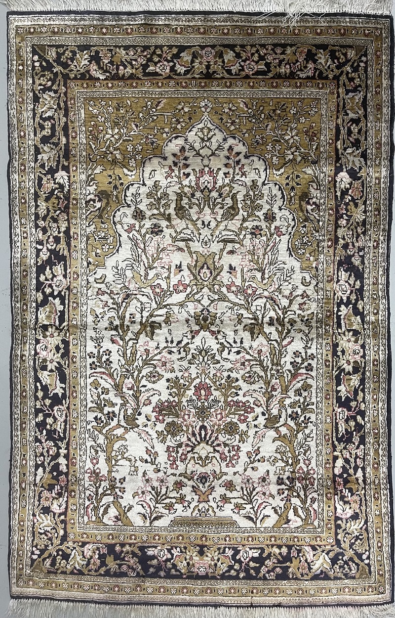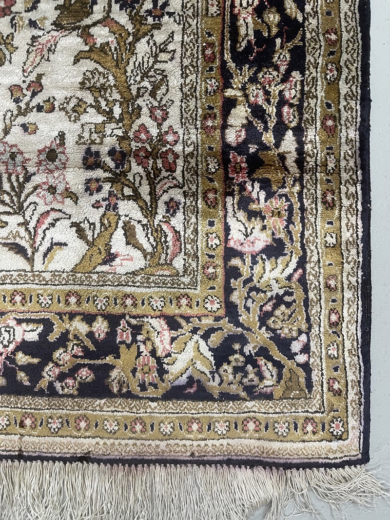 Description: Semi-Antique 100% Silk rug with Tree of Life design, one the famous designs used on high-end rugs.