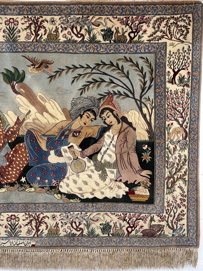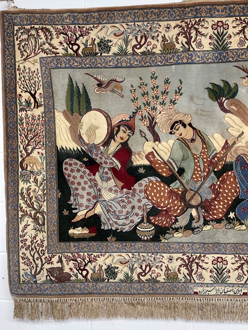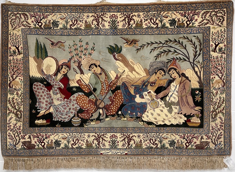 Description: One of a kind masterpiece rug, Bazmi (Persian Party), designed and signed by Master Ebrahimzadeh.