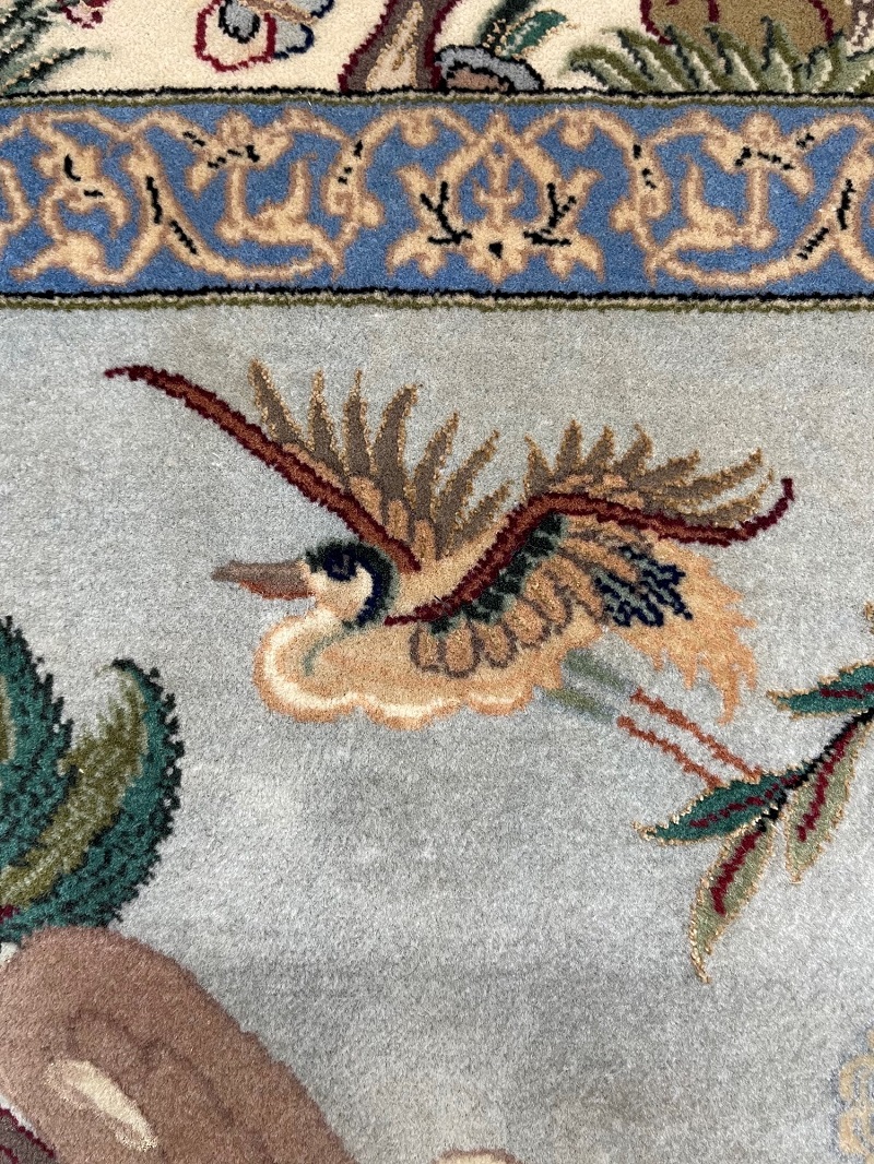 The color combination of sky blue, green, and light brown for nature mix with clothing texture colors is one of the best features in this rug.