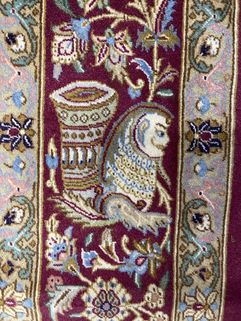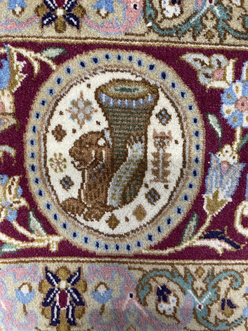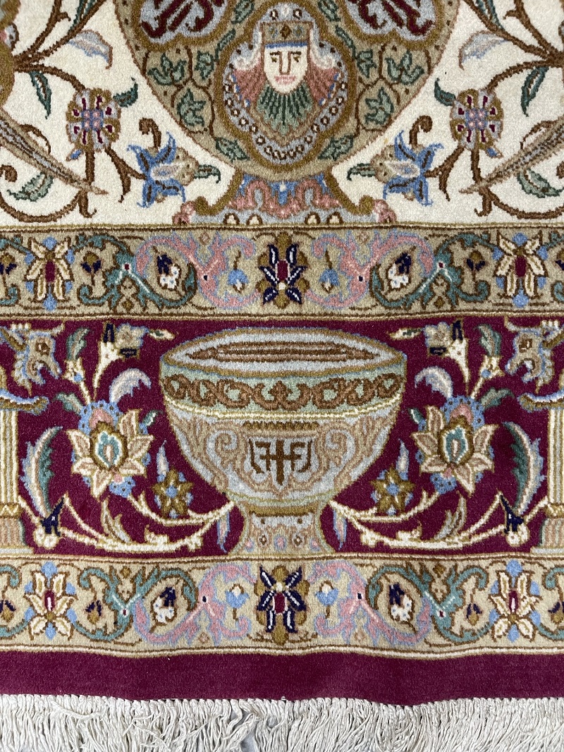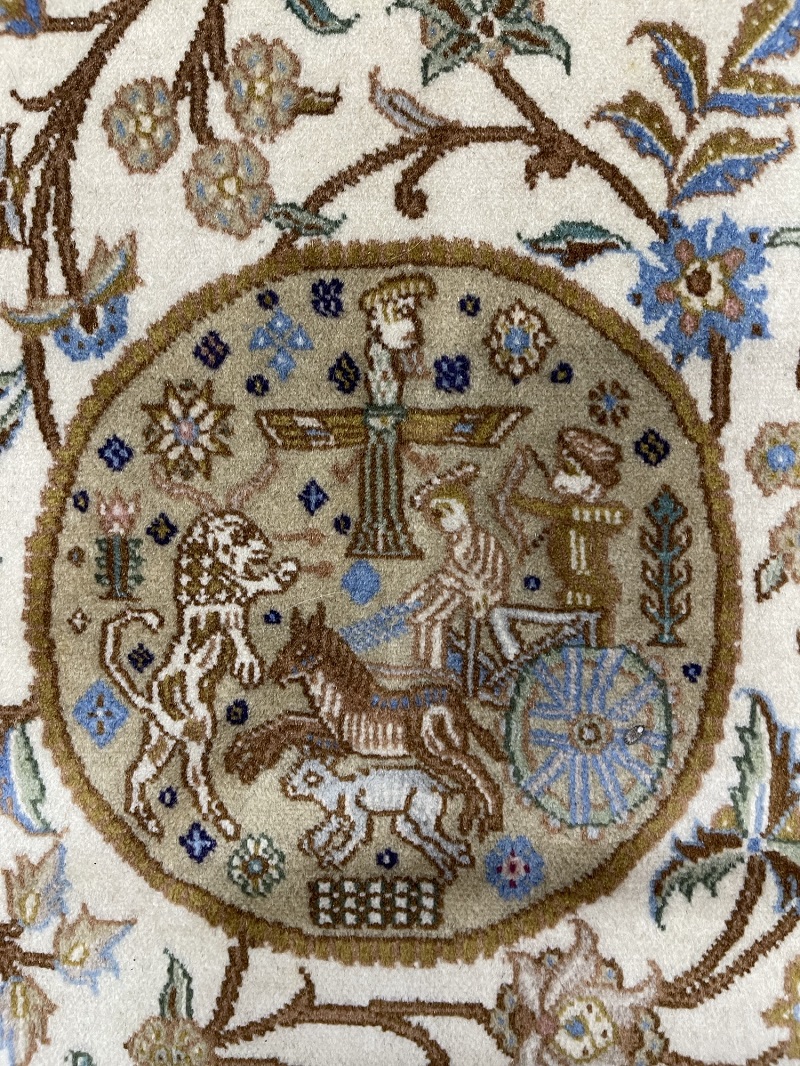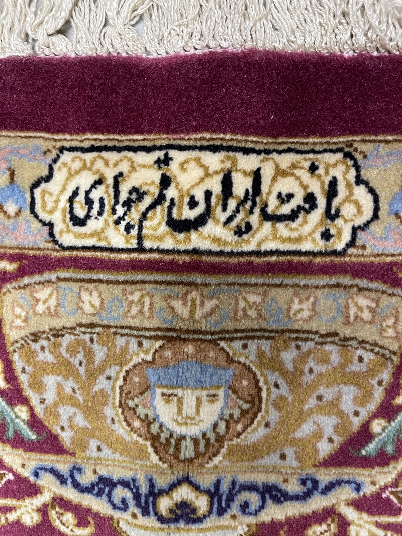 Description: A beautiful antique rug representing ancient symbols of Persia used in Takhte Jamshid and other historical palaces and monuments.