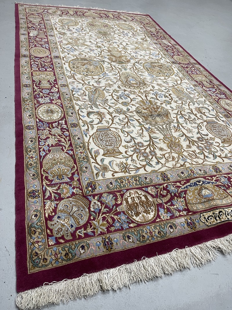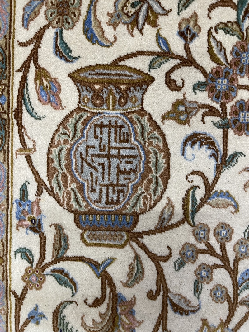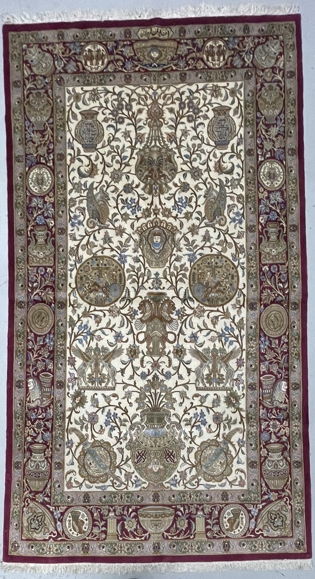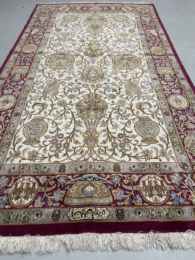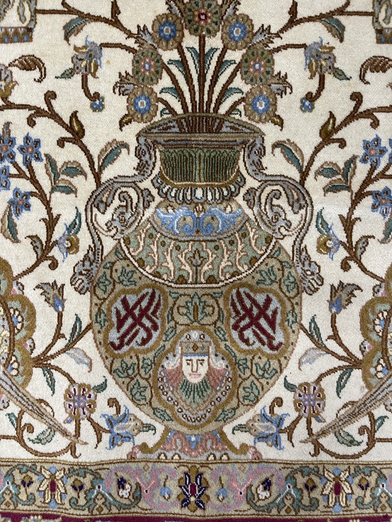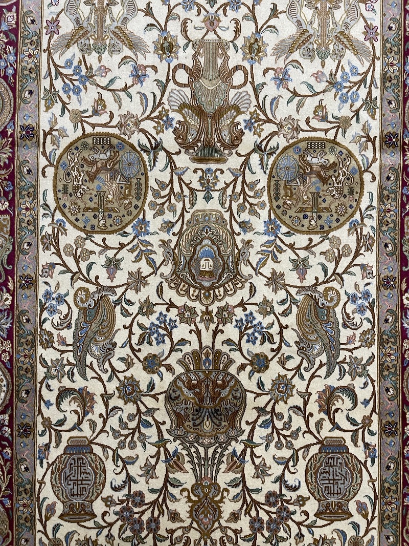 Description: A beautiful antique rug representing ancient symbols of Persia used in Takhte Jamshid and other historical palaces and monuments.